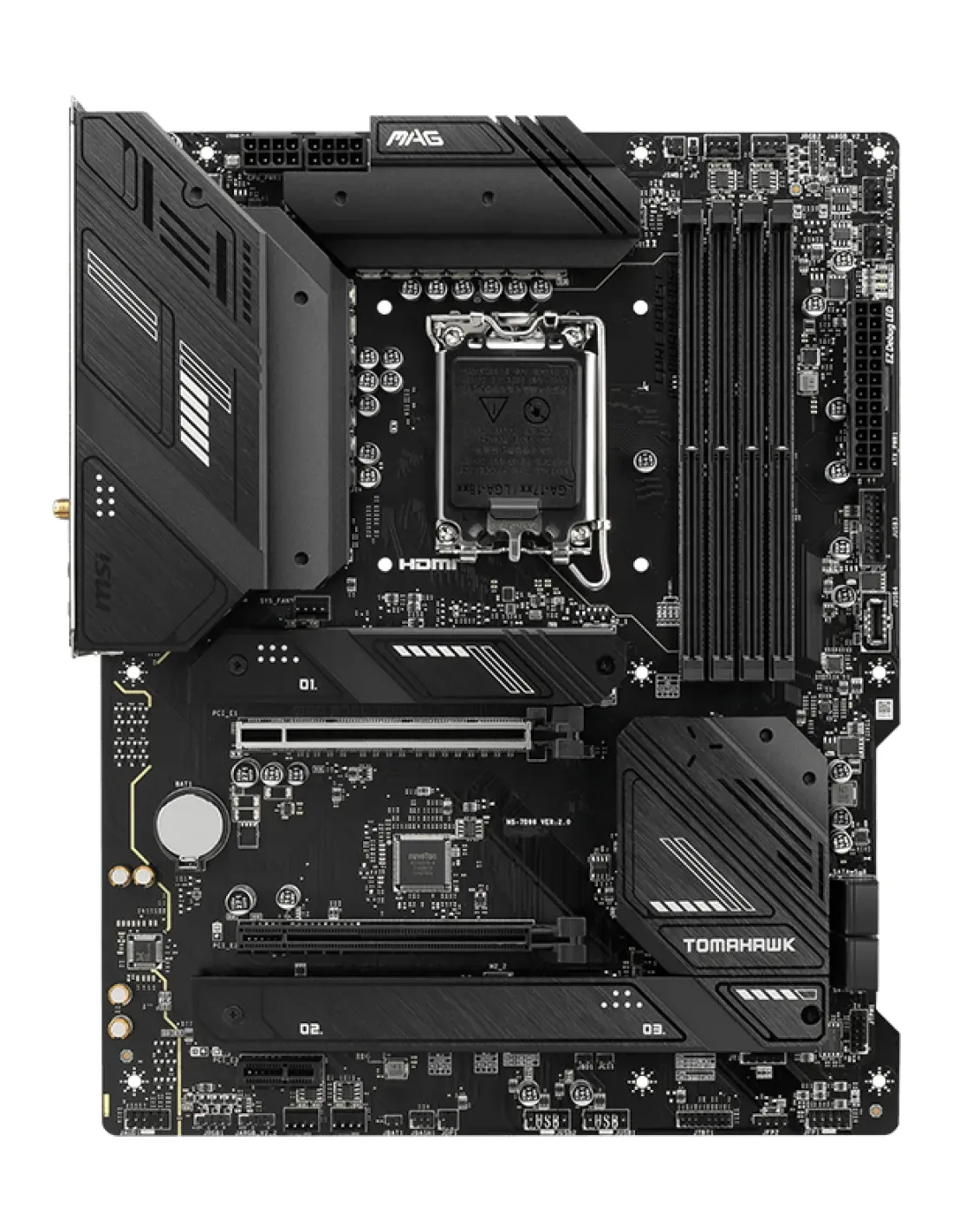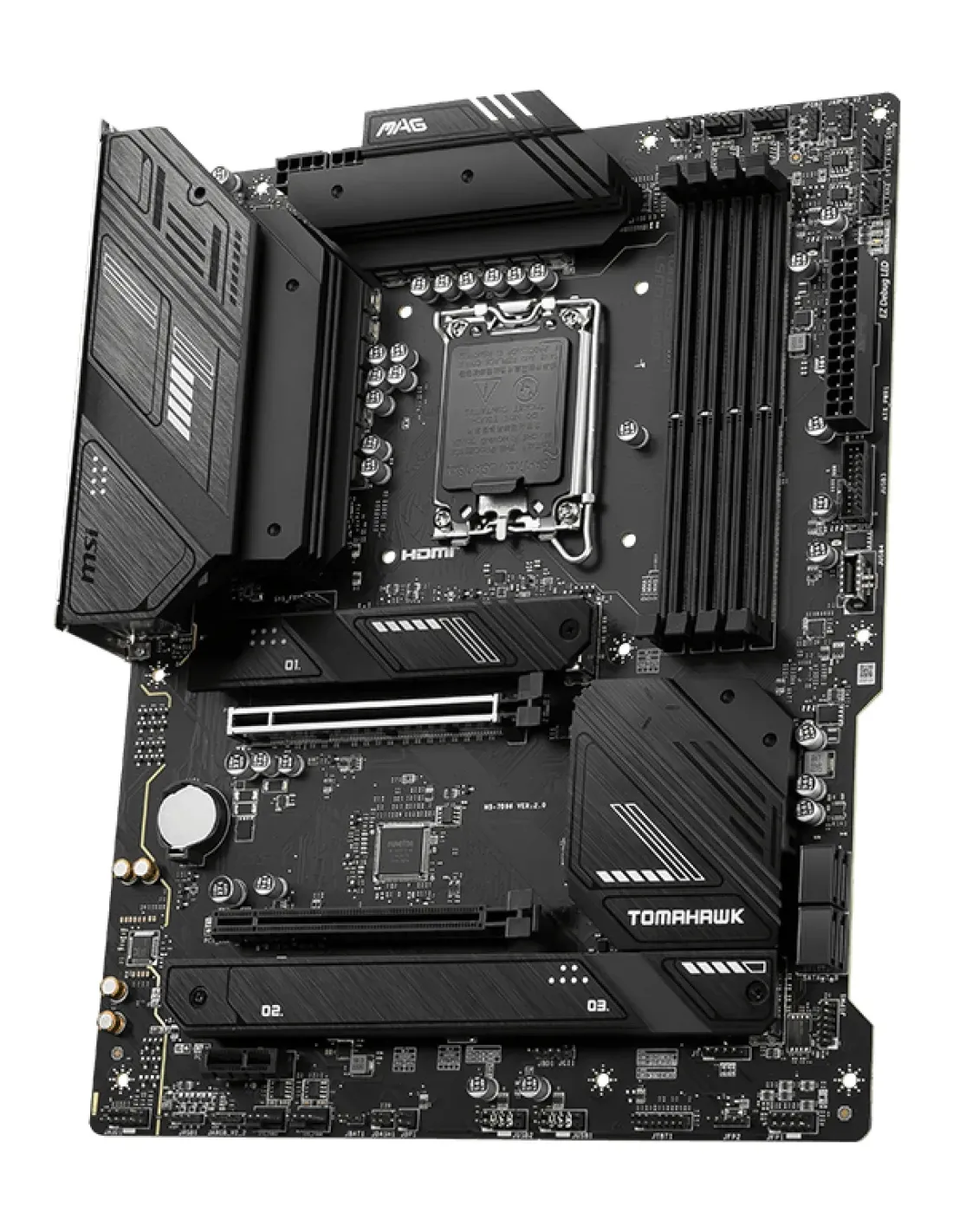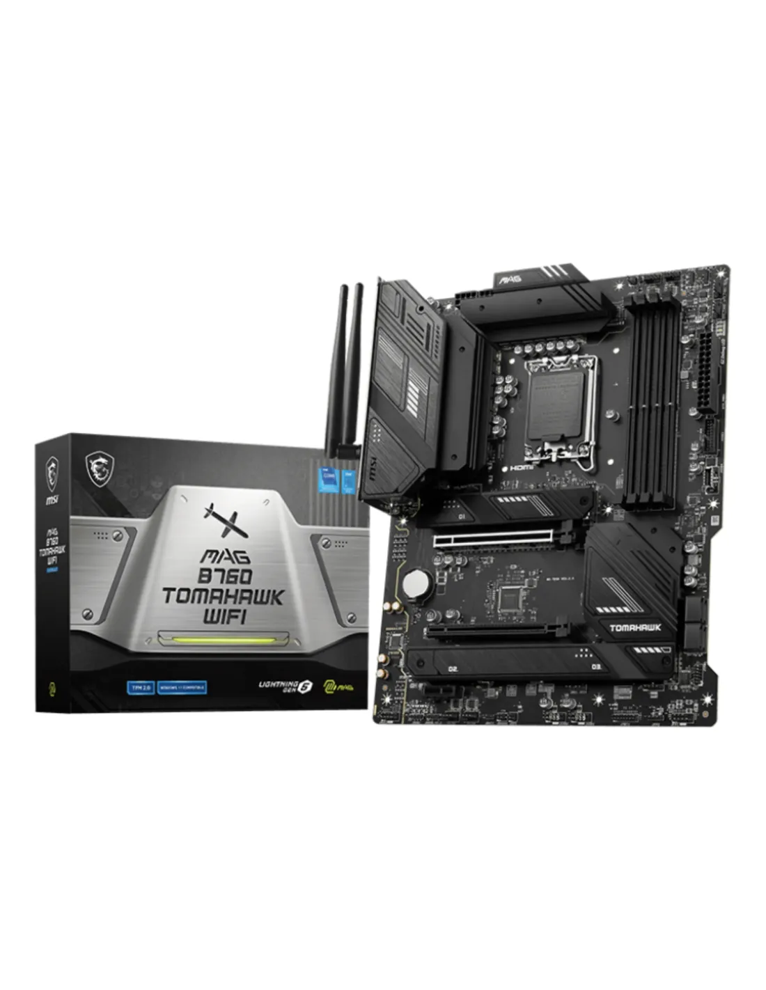 MSI MAG B760 TOMAHAWK WIFI. Produttore processore: Intel, Presa per processore: LGA 1700, Processori compatibili: Intel® Celeron®, Intel® Pentium® Gold. Tipi di memoria supportati: DDR5-SDRAM, RAM massima supportata: 128 GB, tipo di slot di memoria: DIMM. Interfacce dell'unità di archiviazione supportate: M.2, SATA III, Livelli RAID: 0, 1, 5, 10. Tipo di interfaccia Ethernet: 2.5 Gigabit Ethernet, Wi-Fi standard: Wi-Fi 6E (802.11ax), Standard Wi-Fi: 802.11a, 802.11b, 802.11g, Wi-Fi 4 (802.11n), Wi-Fi 5 (802.11ac), Wi-Fi 6 (802.11ax), Wi-Fi 6E.... Componente per: PC, Fattore di forma scheda madre: ATX, Famiglia di chipset per scheda madre: Intel
