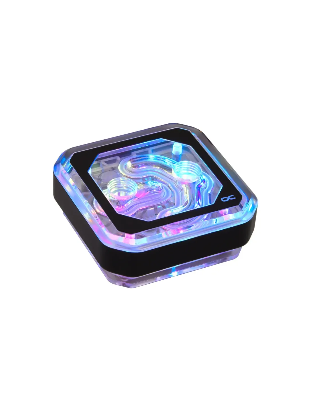 Alphacool Eisblock XPX Aurora. Tipo: Blocco di acqua, Materiali: Nylon, Plexiglass, Colore del prodotto: Nero, Trasparente. Larghezza: 75,8 mm, Profondità: 75,8 mm, Altezza: 33 mm. Quantità per pacco: 1 pz, Larghezza imballo: 217 mm, Profondità imballo: 130 mm