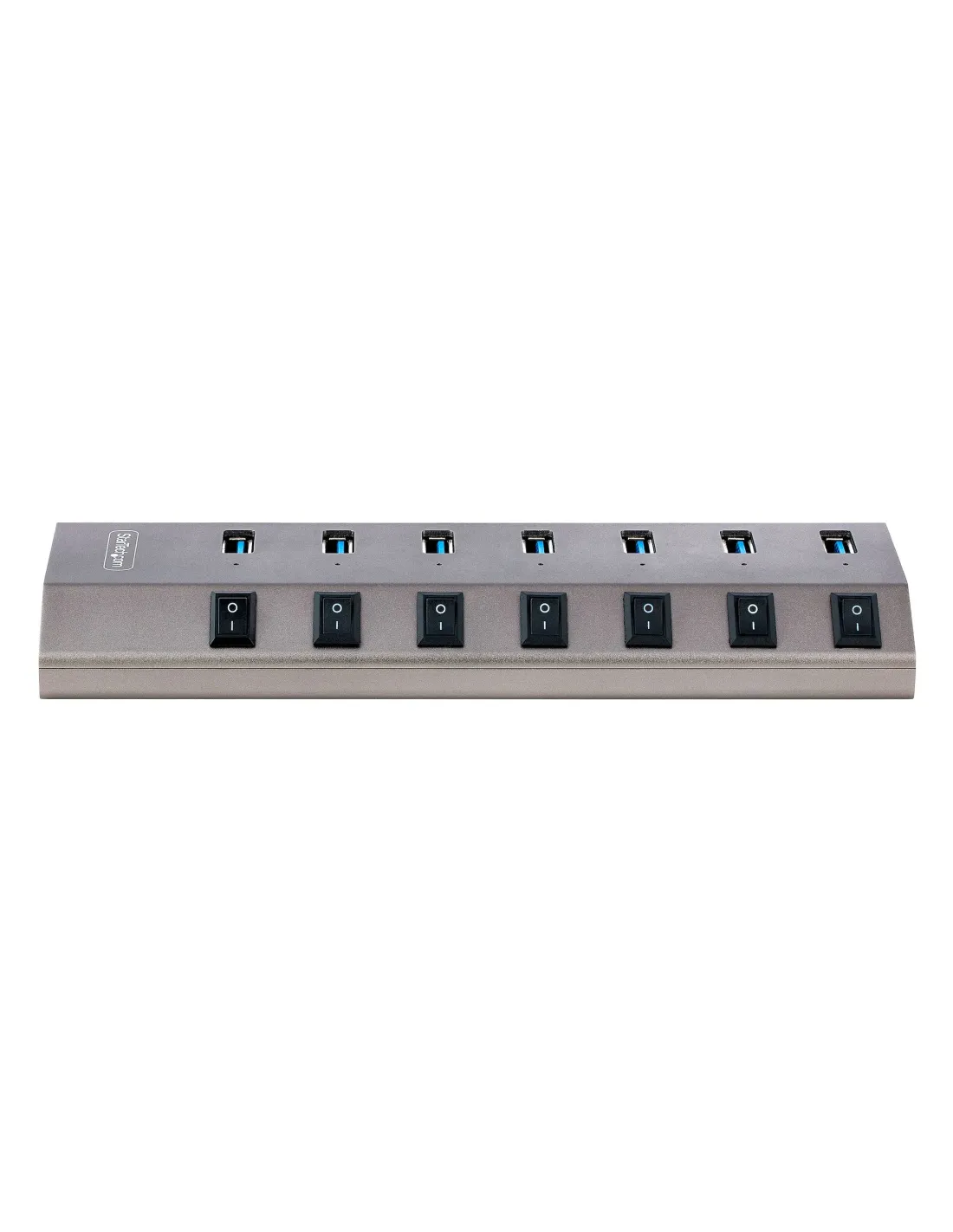 Le sette porte di questa multipresa USB sono dotate di un interruttore per disattivare la connessione dati/alimentazione del dispositivo collegato quando non viene utilizzato. Ciò significa che è possibile spegnere le singole porte USB per ridurre il consumo energetico, senza dover scollegare fisicamente il dispositivo o il cavo. Inoltre, questa funzione può garantire la privacy spegnendo le fotocamere o i dispositivi di archiviazione dati esterni che contengono dati sensibili quando non sono in uso.