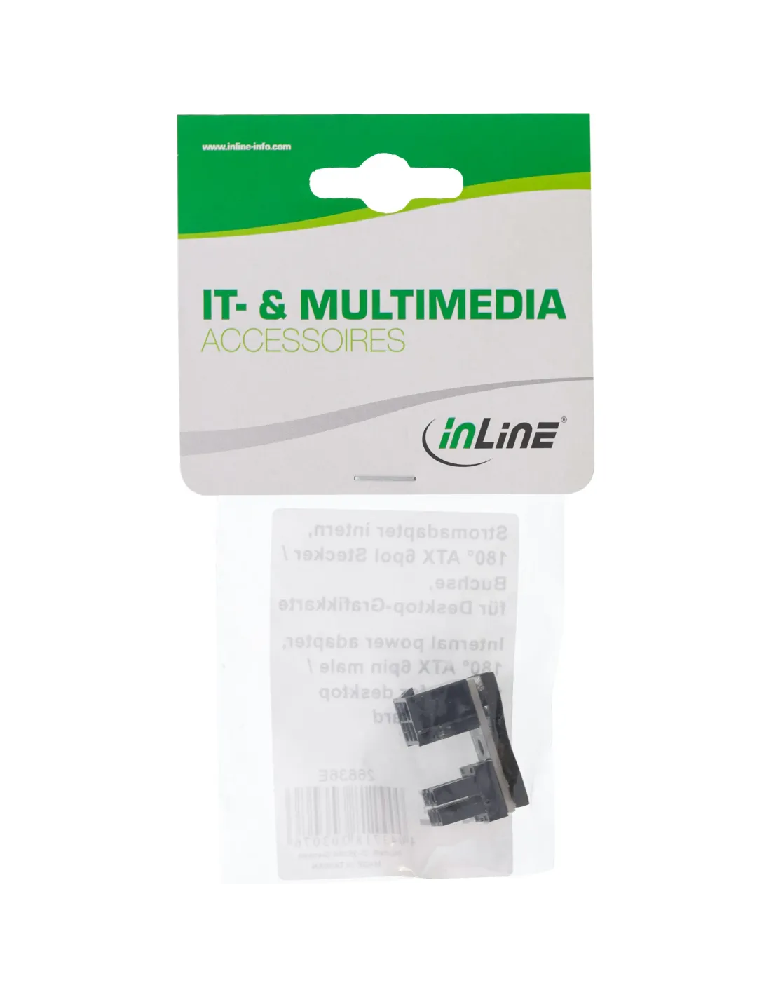 InLine adattatore interno power, 180° ATX 6pin maschio/femmina. Colore del prodotto: Nero. Larghezza: 20 mm, Altezza: 15 mm, Peso dell'imballo: 10 g