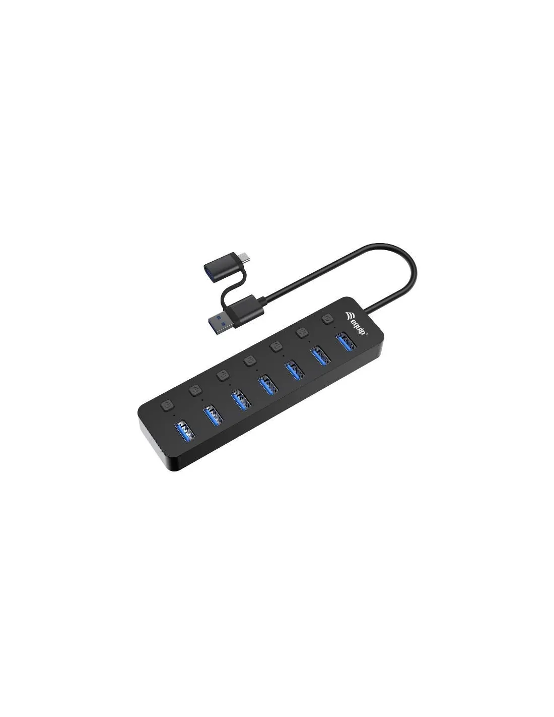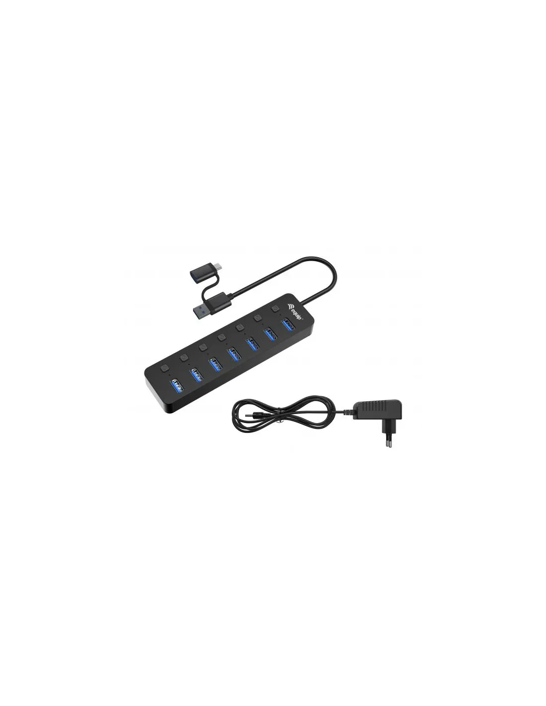 L'Hub USB 3.2 Gen 1 a 7 porte con alimentatore Equip è un dispositivo versatile ed efficiente che amplia le opzioni di connettività. Con sette porte USB 3.2 Gen 1 ad alta velocità, è possibile collegare senza problemi una serie di periferiche USB, da dischi rigidi esterni a stampanti, smartphone e altro ancora. L'adattatore di alimentazione incluso garantisce un'alimentazione stabile, evitando cadute di tensione e assicurando un trasferimento di dati senza interruzioni. Questo hub è una soluzione affidabile per la gestione simultanea di più dispositivi USB, ideale per la casa o l'ufficio dove la connettività e la comodità sono fondamentali. Semplificate la vostra vita digitale con questo hub USB potente e ben progettato.