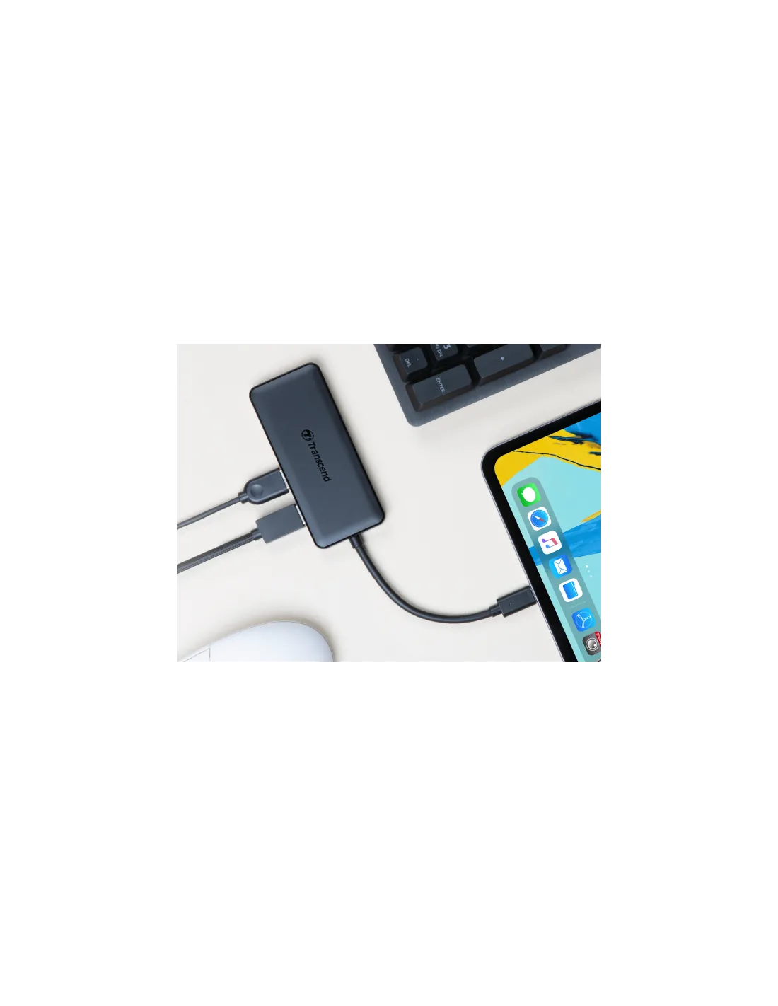 L'hub USB Type-C 6 in 1 di Transcend HUB5C è dotato di un connettore USB Type-C reversibile dotato di interfaccia USB 3.1 Gen 2 per consentire incredibili velocità di trasferimento dei dati, un complemento perfetto per il tuo nuovo dispositivo mobile, tablet, Type-C, laptop, iPad Pro 2018 o MacBook. Caratterizzato dalla sua facile espansione e funzionalità plug-and-play, l'hub Type-C sottile e leggero aumenta la produttività del lavoro senza aggiungere alcun onere. Puoi collegare periferiche come mouse, tastiere, unità flash USB, dischi rigidi esterni o SSD portatili, oppure estrarre la scheda SD o microSD non appena hai finito di scattare un servizio fotografico e leggere i file direttamente dal tuo laptop o dispositivo mobile. Due porte di tipo C ti consentono di caricare i tuoi dispositivi e trasferire i dati contemporaneamente, rendendo tutto il doppio più semplice!