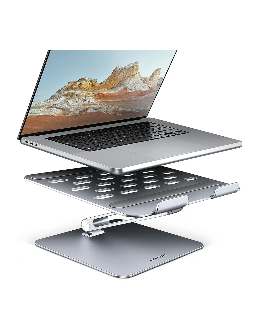 Axagon STND-LQ. Tipo di prodotto: Supporto per laptop e tablet, Colore del prodotto: Grigio, Materiali: Alluminio. Altezza massima: 20,5 cm, Inclinazione: 0 - 180°. Larghezza: 255 mm, Profondità: 47 mm, Altezza: 255 mm. Larghezza imballo: 295 mm, Profondità imballo: 262 mm, Altezza imballo: 53 mm