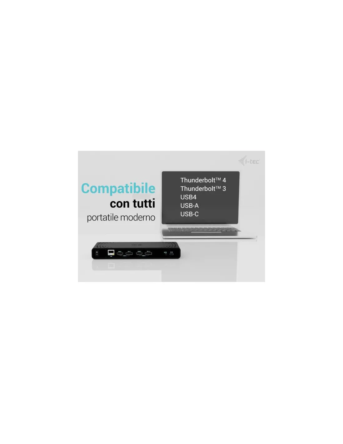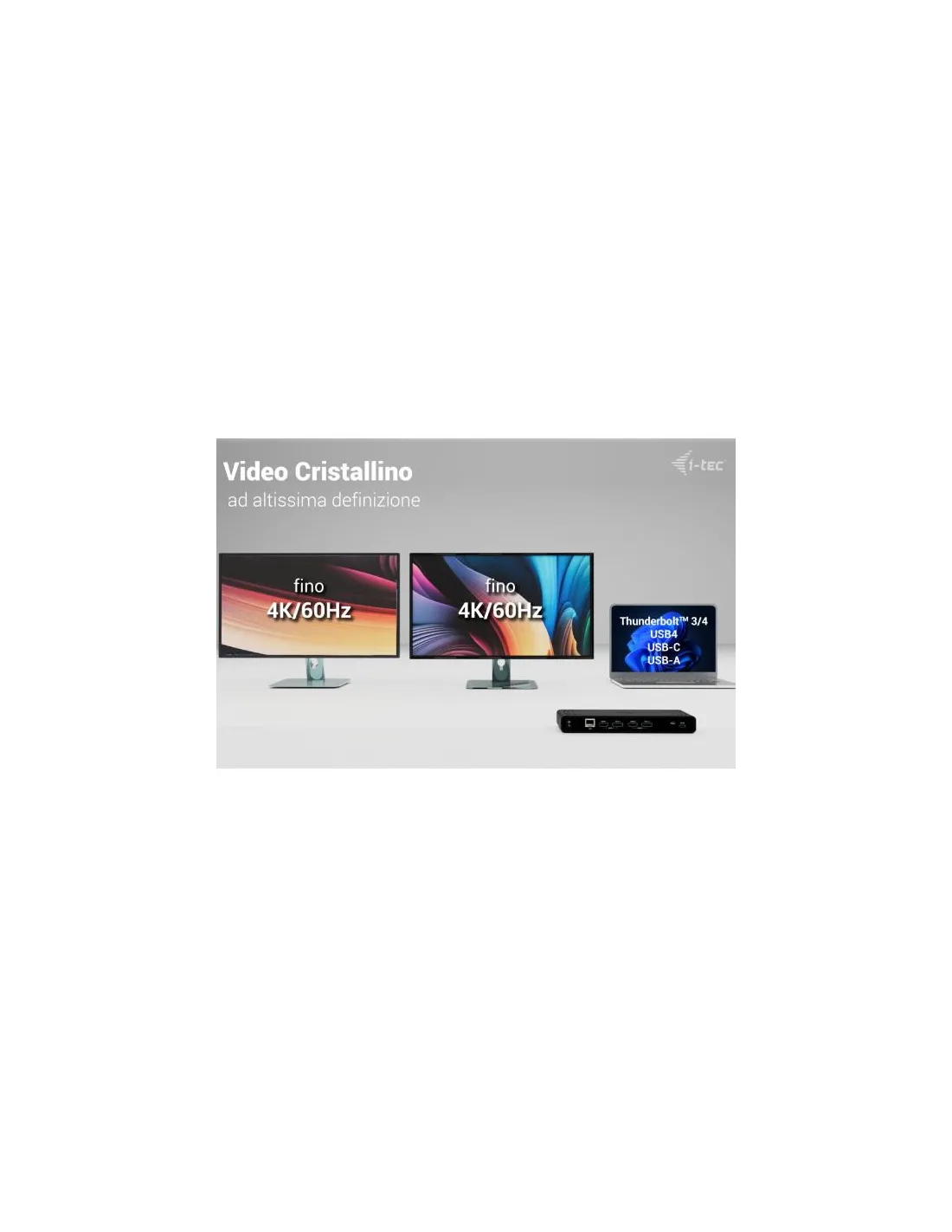 I-TecUna docking station potente ma conveniente che supporta l’output fino a due monitor esterni in alta risoluzione, fino a 4K/60Hz. Il dock può essere utilizzato praticamente con tutti i computer portatili in quanto supporta la connessione a tutte le porte più comuni: 3.0, USB-C, USB4 e Thunderbolt” 3/4 e supporta tutti i più comuni sistemi operativi attuali.
