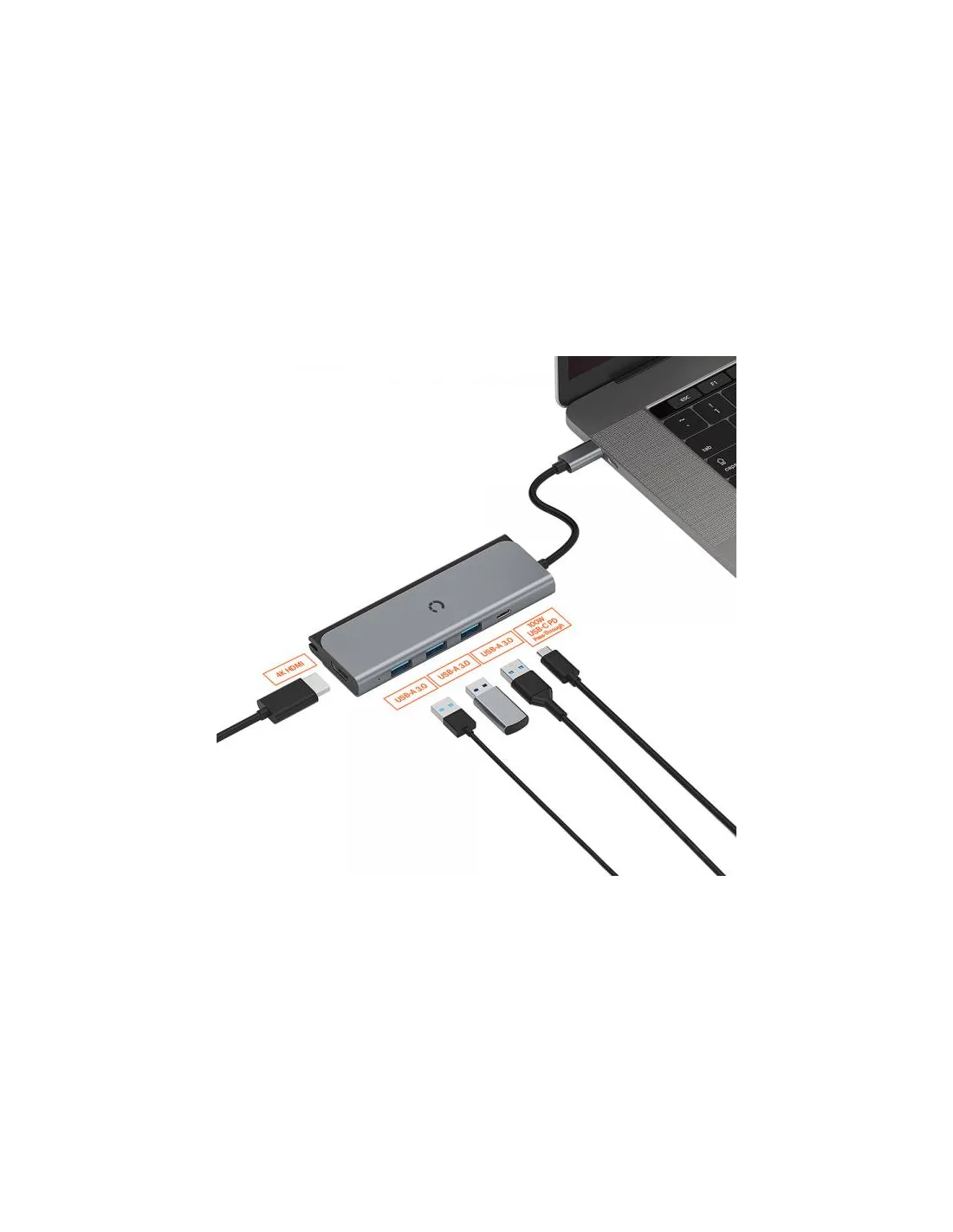 Combinando tutte le porte essenziali in un design sottile e portatile, TravelMate USB-C Hub espande senza sforzo le tue opzioni di connettività ovunque tu sia. Migliora la tua produttività aggiungendo un monitor tramite la porta display HDMI ad alta risoluzione. Utilizza le porte USB-A per collegare accessori come mouse e tastiera wireless o trasferire dati o file di immagini da dispositivi di archiviazione USB portatili. Carica il tuo laptop tramite l'hub stesso con la porta pass-through USB-C PD da 100 W.