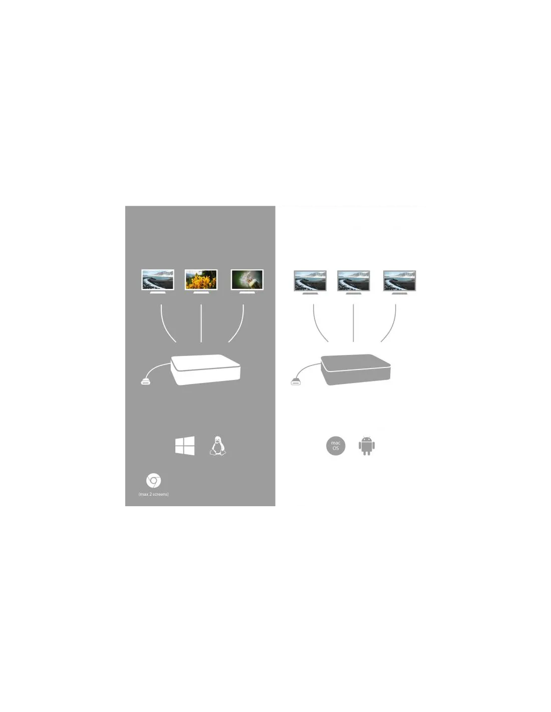 Un’ ergonomica docking station USB-C in metallo, la quale supporta fino a 3 monitor esterni. La station è compatibile con qualsiasi notebook munito di una porta USB-C o Thunderbolt 3 (il cavo di 60 cm integrato è abbastanza lungo per il collegamento di tutti i notebook con monitor entro 15“ di grandezza). Questa docking station offre 4 porte USB, una porta LAN integrata per una connessione rapida e affidabile alla rete aziendale e un’ alimentazione fino a 85 W.