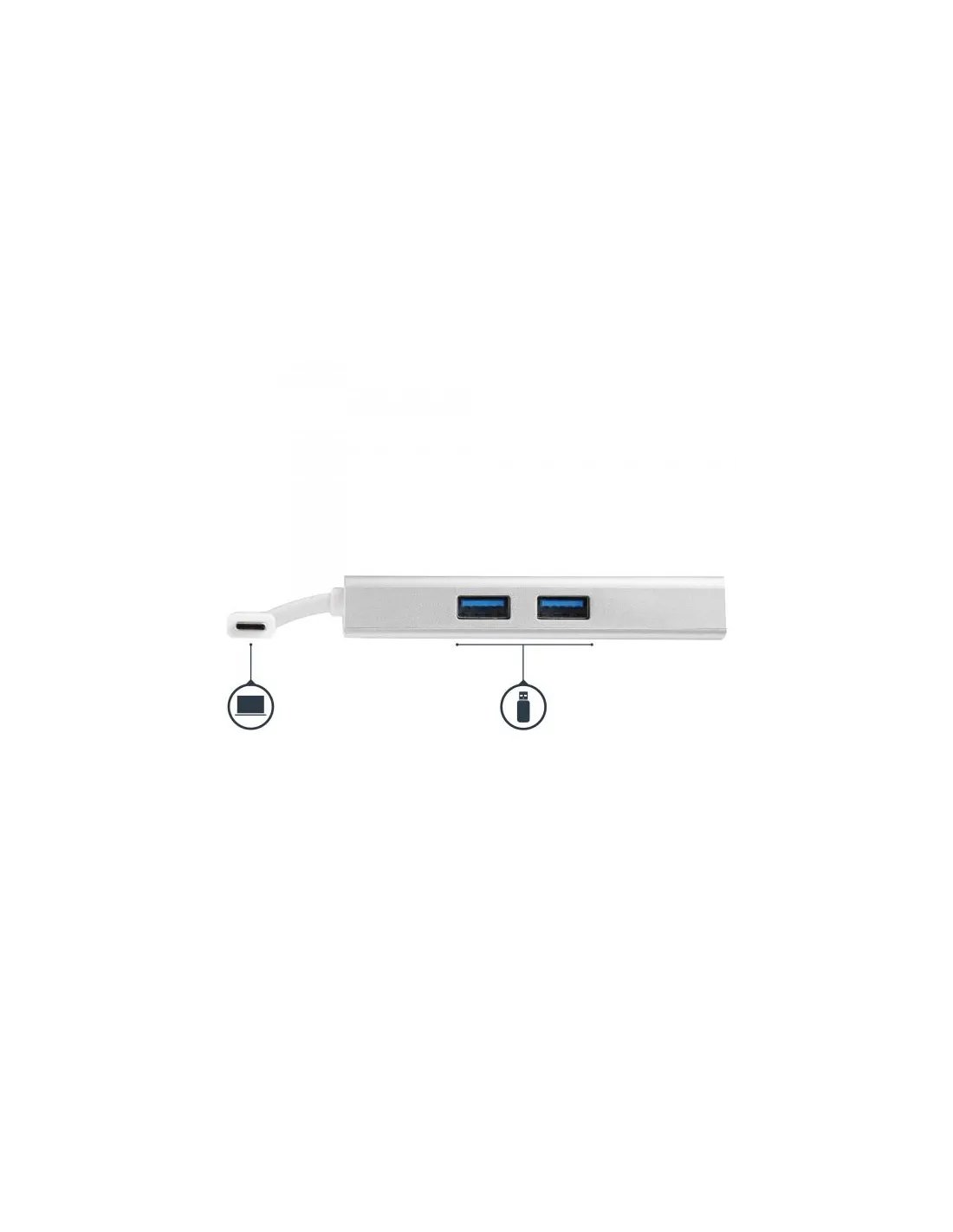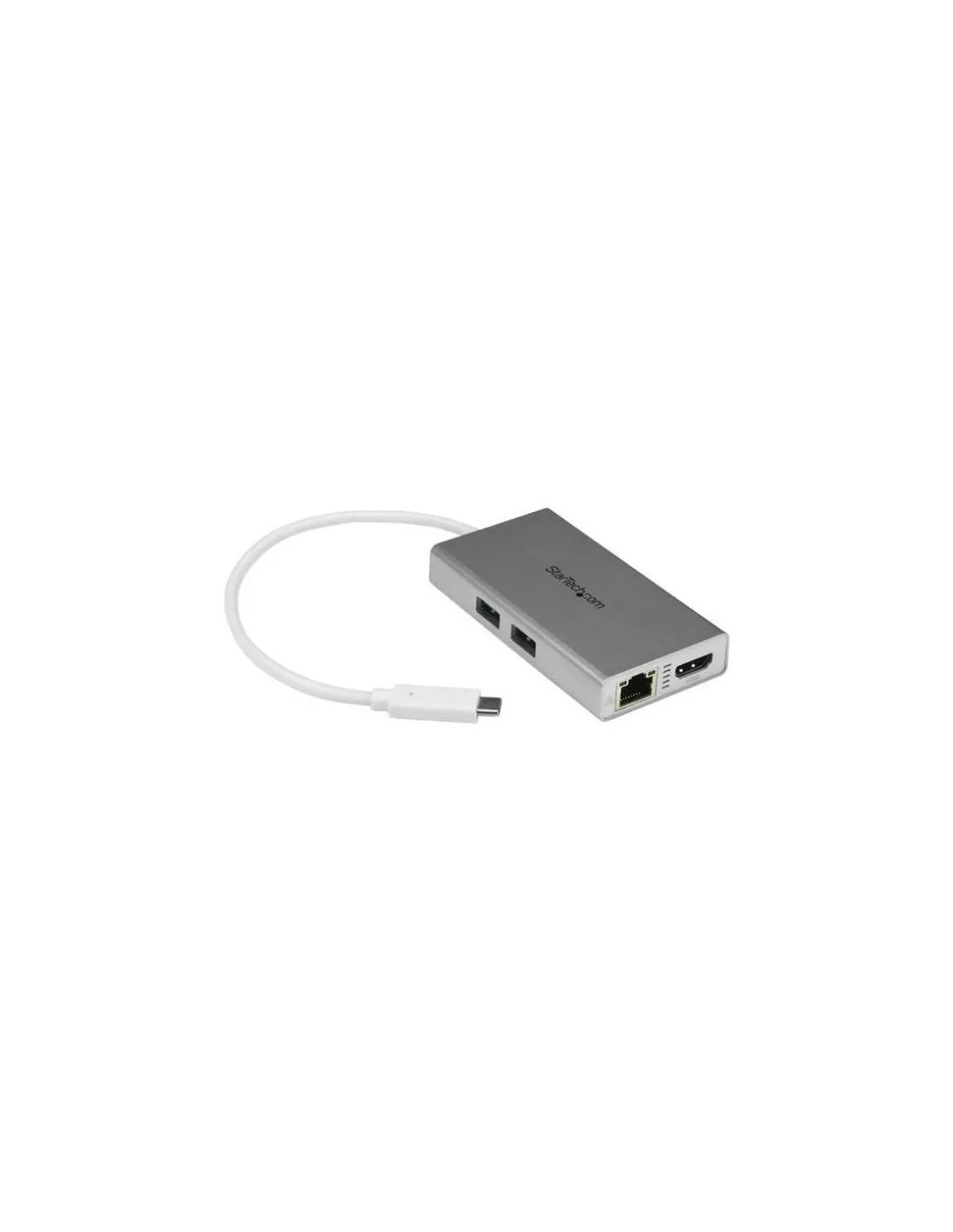 Questo elegante adattatore multiporta USB-C con HDMI combina le funzionalità di tre adattatori a funzione singola in una docking station portatile per computer laptop, offrendo in un'unica soluzione portatile tutta la praticità di un adattatore USB-C a USB, di un adattatore USB-C a Ethernet e di un adattatore HDMI 4K USB-C.