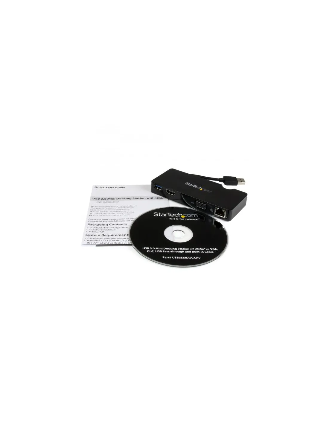 La docking station da viaggio per laptop consente di trasformare il laptop o Ultrabook™ in una workstation portatile. Consente di aggiungere un'uscita video HDMI® o VGA, una porta hub USB 3.0 e una porta RJ45 Gigabit Ethernet utilizzando un unico collegamento host USB 3.0. Il dock adatto per il viaggio consente di superare le limitazioni delle porte dei moderni computer portatili, risultando ideale per il laptop, Microsoft Surface™ Pro 4, Surface Pro 3, Surface 3, Surface Pro 2 o Surface Book..Ora è possibile evitare il fastidio di dover trasportare più adattatori. Consolidando quattro porte di collegamento fondamentali in un solo comodo dispositivo, il dock da viaggio rappresenta l'accessorio ideale per il laptop. Presenta un design compatto e leggero che si adatta senza problemi alla borsa da viaggio e presenta inoltre un cavo di collegamento host integrato, che si inserisce perfettamente nella custodia per docking station.Una soluzione versatile per il collegamento di un display aggiuntivo al laptop, la docking station da viaggio offre un'uscita video HDMI con audio, o un'uscita video VGA, fornendo due interfacce note per il collegamento di un televisore, proiettore o monitor come display secondario, con il supporto di risoluzioni fino a 2048x1152 (QWXGA). Sfruttando l'interfaccia USB 3.0 (5 Gbps) ad elevata larghezza di banda che mette a disposizione un'uscita video flessibile, una porta hub USB 3.0 e Gigabit Ethernet, è possibile configurare rapidamente una workstation multifunzione quando si è in viaggio, senza sacrificare una delle porte USB del laptop.La configurazione è semplice e senza problemi; questa docking station da viaggio scarica automaticamente il driver più recente quando viene collegata a un sistema Windows® con una connessione di rete attiva.USB3SMDOCKHV è dotato della garanzia di 3 anni StarTech.com e del supporto tecnico gratuito a vita.