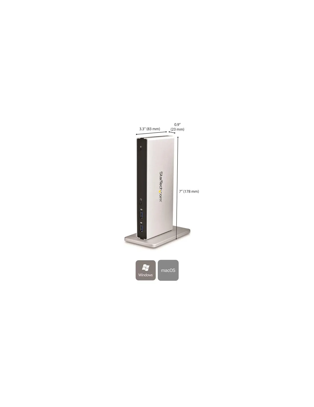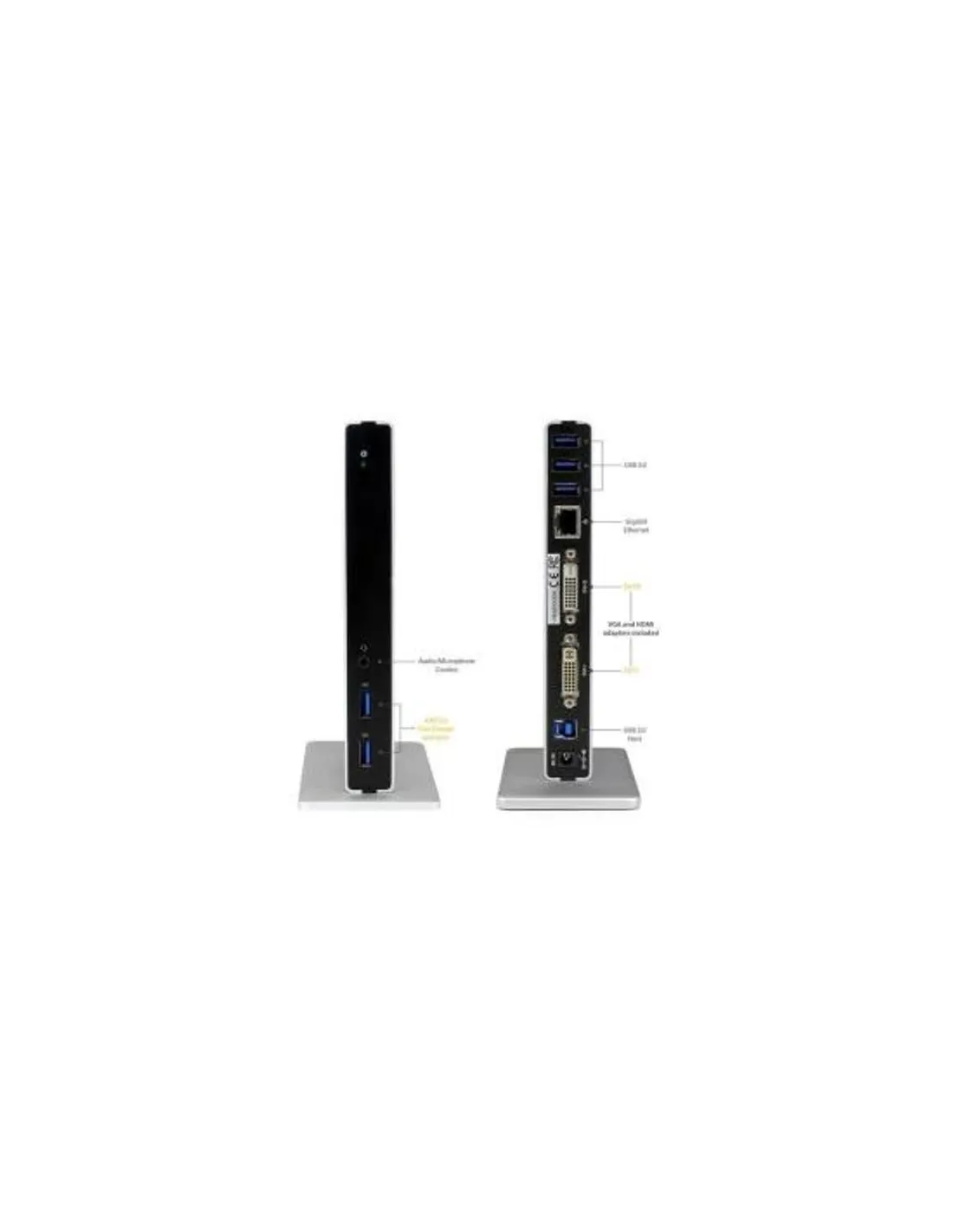 Questa Docking Station Universale per Laptop USB 3.0 a due monitor trasforma il computer laptop in una workstation a due monitor con opzioni di configurazione flessibili. Scelta flessibile del display Questa docking station con due porte DVI aggiunge il supporto per due monitor alla workstation, permettendo di utilizzare risoluzioni fino a 2048x1152. Con una maggiore quantità di spazio sullo schermo, è possibile accedere a più applicazioni contemporaneamente e consultare il materiale di riferimento su un display mentre si scrive sull'altro. Per consentire alla docking station USB 3.0 di supportare una vasta gamma di display, sono inclusi due adattatori per display (da DVI a VGA e da DVI ad HDMI). Connessioni potenti per la ricarica rapida dei dispositivi Trasforma il computer laptop in una workstation che supporta tutte le periferiche. Questa Docking Station Universale per Laptop USB 3.0 include cinque porte USB 3.0 (USB 3.1 Gen 1). Le due porte USB anteriori sono a ricarica rapida (specifica di ricarica delle batterie USB 1.2). Queste porte comodamente accessibili ricaricano i dispositivi mobili più velocemente delle porte USB standard, anche quando il computer laptop non è inserito nella docking station. La docking station include anche una porta GbE, un jack per cuffie e porte per audio e microfono separate da 3,5 mm, per offrire tutte le connessioni necessarie. Risparmio di spazio sulla scrivania Il supporto opzionale in dotazione consente di posizionare la docking station in verticale per risparmiare spazio prezioso sulla scrivania. Il prodotto USB3SDOCKDD è coperto da una garanzia StarTech.com di 3 anni e dal supporto tecnico gratuito a vita.