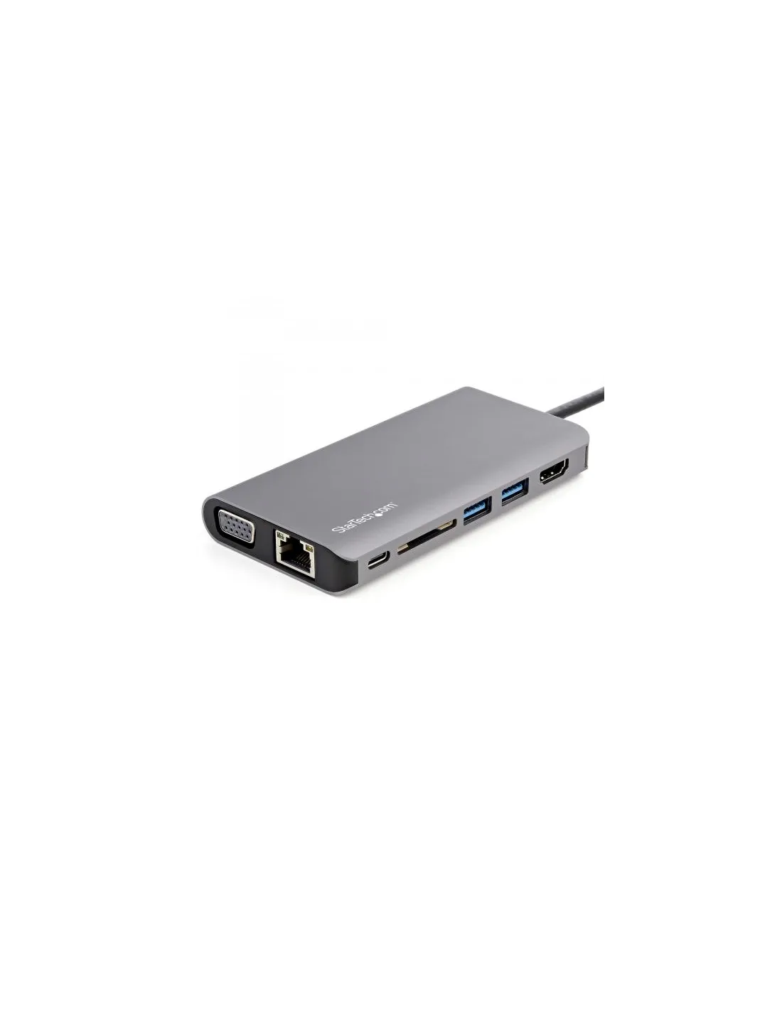 Questo adattatore multiporta USB-C trasforma un dispositivo MacBook Pro, USB-C™, Chromebook o Android (Samsung Galaxy S8, Note 9 e versioni successive) in una workstation, ovunque si vada. Un adattatore USB Type-C, ideale per i viaggi, dotato di tutte le caratteristiche, dalle indispensabili uscite video HDMI o VGA e porte USB, a un lettore di schede SD e tecnologia PD a 100 W, incluso il pass-through PD. Tutto questo con un singolo cavo host Thunderbolt 3 o USB-C da 30 cm di lunghezza estesa, che offre una maggiore flessibilità per i collegamenti dei computer laptop e tablet più difficili da raggiungere. Due opzioni di uscita video con HDMI o VGA Questo adattatore multiporta USB-C è dotato di una porta HDMI e VGA che offre due opzioni di uscita video singola per le presentazioni nelle sale riunioni o la configurazione della workstation, incluso il supporto per un monitor ultra ampio. Alimentazione e ricarica con Power Delivery 3.0 a 100 W Con il supporto per la tecnologia USB Power Delivery 3.0 (fino a 100 W), l'adattatore multiporta USB-C Type-C consente di alimentare e ricaricare il computer laptop e al tempo stesso di alimentare le periferiche, se collegato a un adattatore di alimentazione USB-C. L'hub USB-C è dotato di un pass-through PD che consente di utilizzare il caricabatteria del computer laptop per alimentare l'hub (richiede 15 W) e alimentare o ricaricare il computer laptop contemporaneamente.Tutte le porte essenziali con USBL'hub da USB-C a USB 3.0 fornisce una porta USB-C (alimentazione e dati) e due porte USB-A, per collegare sia i dispositivi USB più recenti che quelli di generazione precedente. Include porte per svolgere più operazioni con SD, audio e Gigabit Ethernet Accesso semplificato a contenuti multimediali, audio e rete. L'adattatore multiporta fornisce l'accesso diretto a: Schede di memoria SD, SDHC™ e SDXC™ o schede microSD tramite lo slot per schede SD Contenuto audio tramite cuffie o microfono attraverso la porta audio a 4 posizioni da 3,5 mm Rete Ethernet tramite la porta GbE utilizzando una connessione cablata