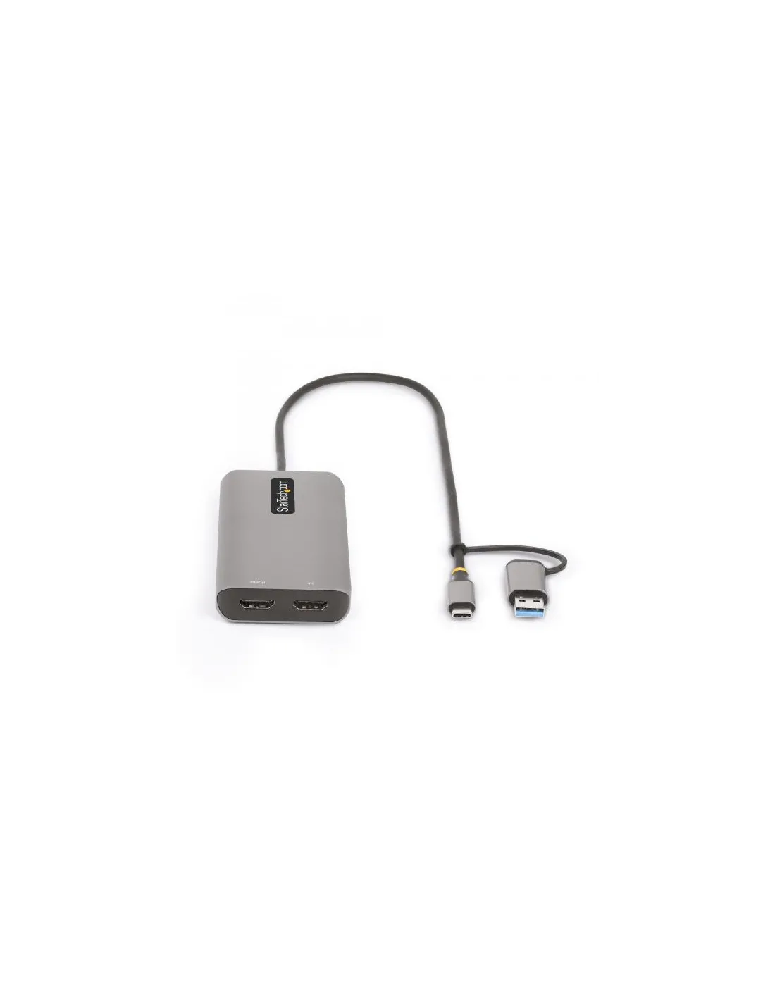 MAGGIORE PRODUTTIVITÀ: l'adattatore multiporta aggiunge due schermi HDMI a computer portatili. Cavo USB-C integrato e dongle USB-C a USB-A collegato. Supporta risoluzioni fino a 4K 30Hz (HDMI 1.4, uscita video 1) e 1080p 60Hz (HDMI 1.2, uscita video 2)