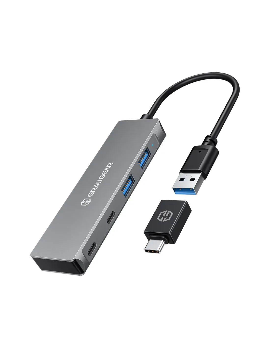 GraugearGRAUGEAR G-HUB2A2C-AC, USB 3.2 Gen 1 (3.1 Gen 1) Type-A + Type-C, USB 3.2 Gen 1 (3.1 Gen 1) Type-A, USB tipo-C, 5000 Mbit/s, Argento, Alluminio, Cavo tondo