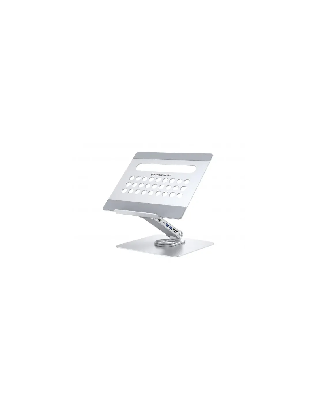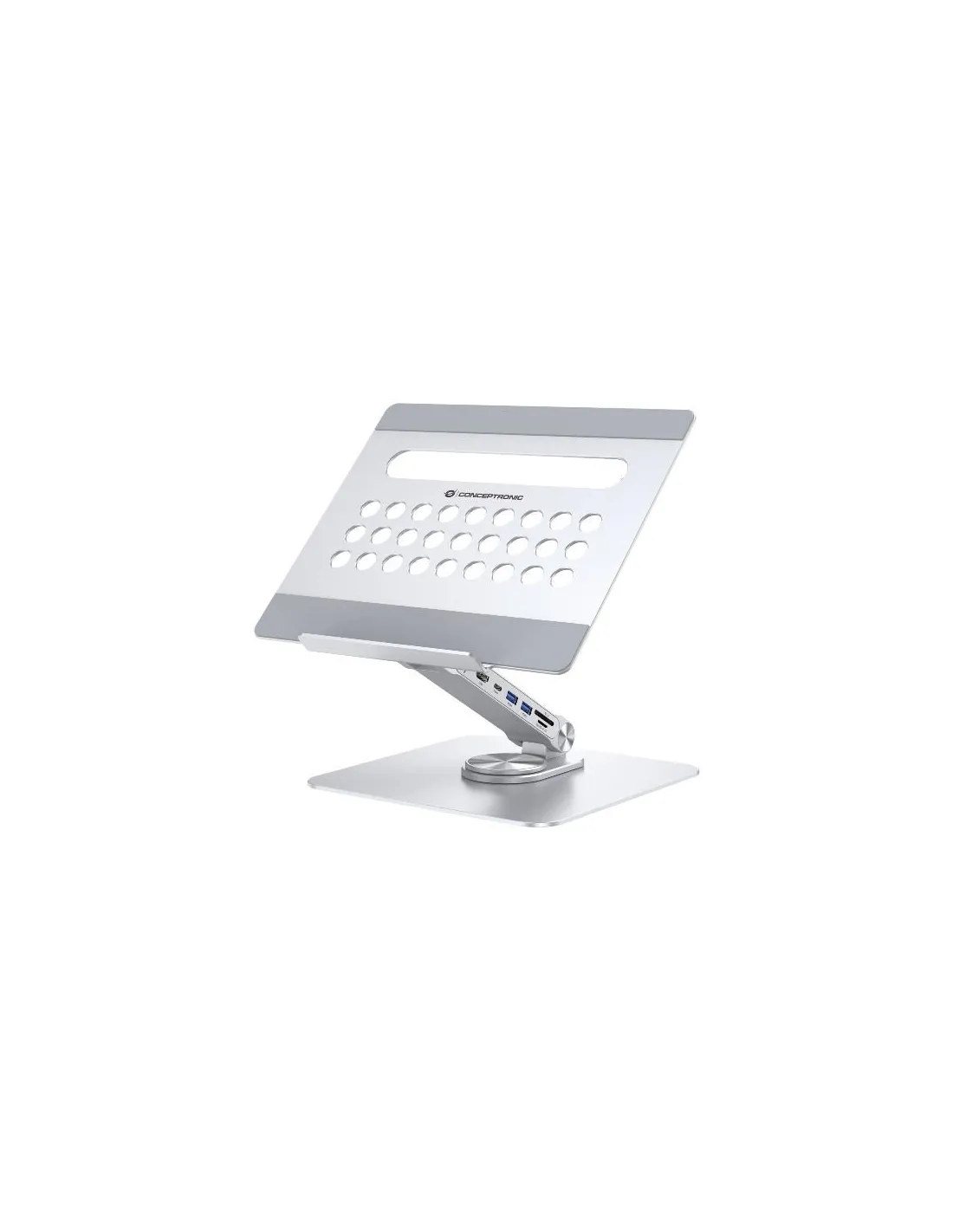 Migliorate la vostra esperienza di supporto per laptop con la nostra docking station 7-in-1 integrata, che espande le funzionalità USB-C del vostro dispositivo. Il supporto offre altezza e angolazione regolabili per un posizionamento ergonomico ottimale, oltre a una base rotante a 360° per posizioni di lavoro flessibili.