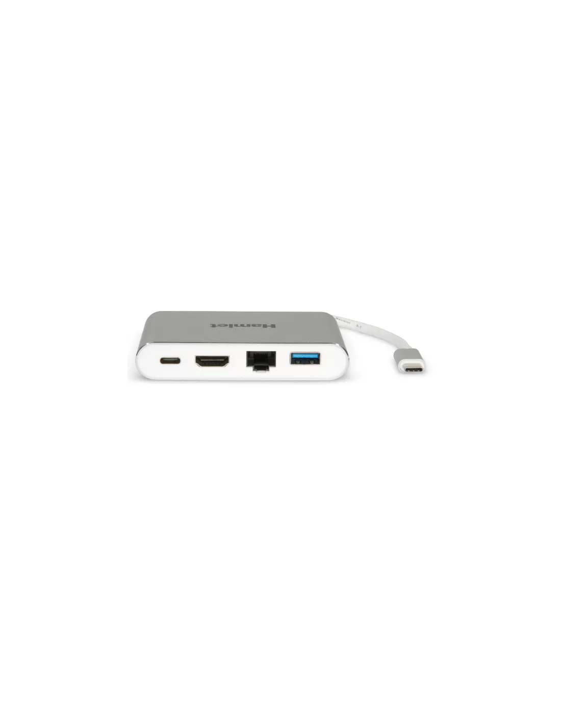 Hamlet USB-C Multiport è una docking station portatile che trasforma il notebook in una workstation grazie all'aggiunta di una porta monitor HDMI 4K, una connettività Gigabit Ethernet, una porta USB 3.0 Tipo A e una USB-C con tecnologia Power Delivery 3.0. La porta USB-C permette di alimentare il notebook fino a 60W collegando un alimentatore in ingresso.
