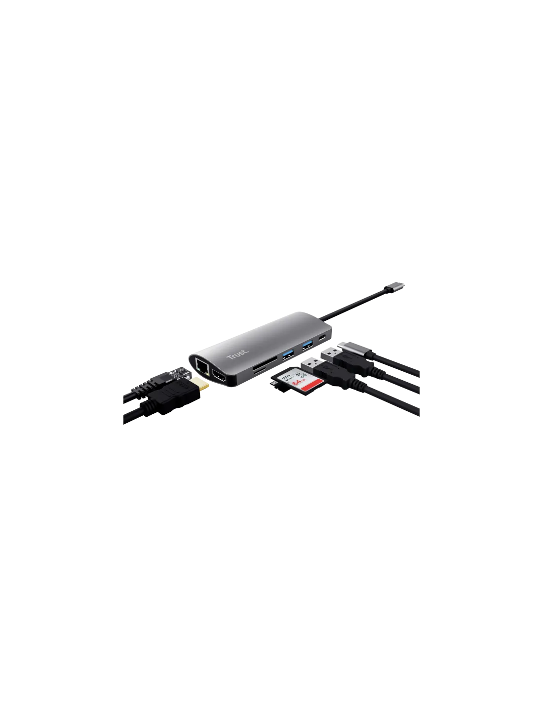 I laptop sottili sono stupendi, ma a volte la mancanza di porte di connessione può essere un problema. Beh, ora non più. Con l'adattatore 7 in 1 Trust Dalyx, la tua produttività aumenterà di sette volte grazie ai collegamenti in dotazione HDMI, Ethernet, scheda di memoria, USB e USB-C.