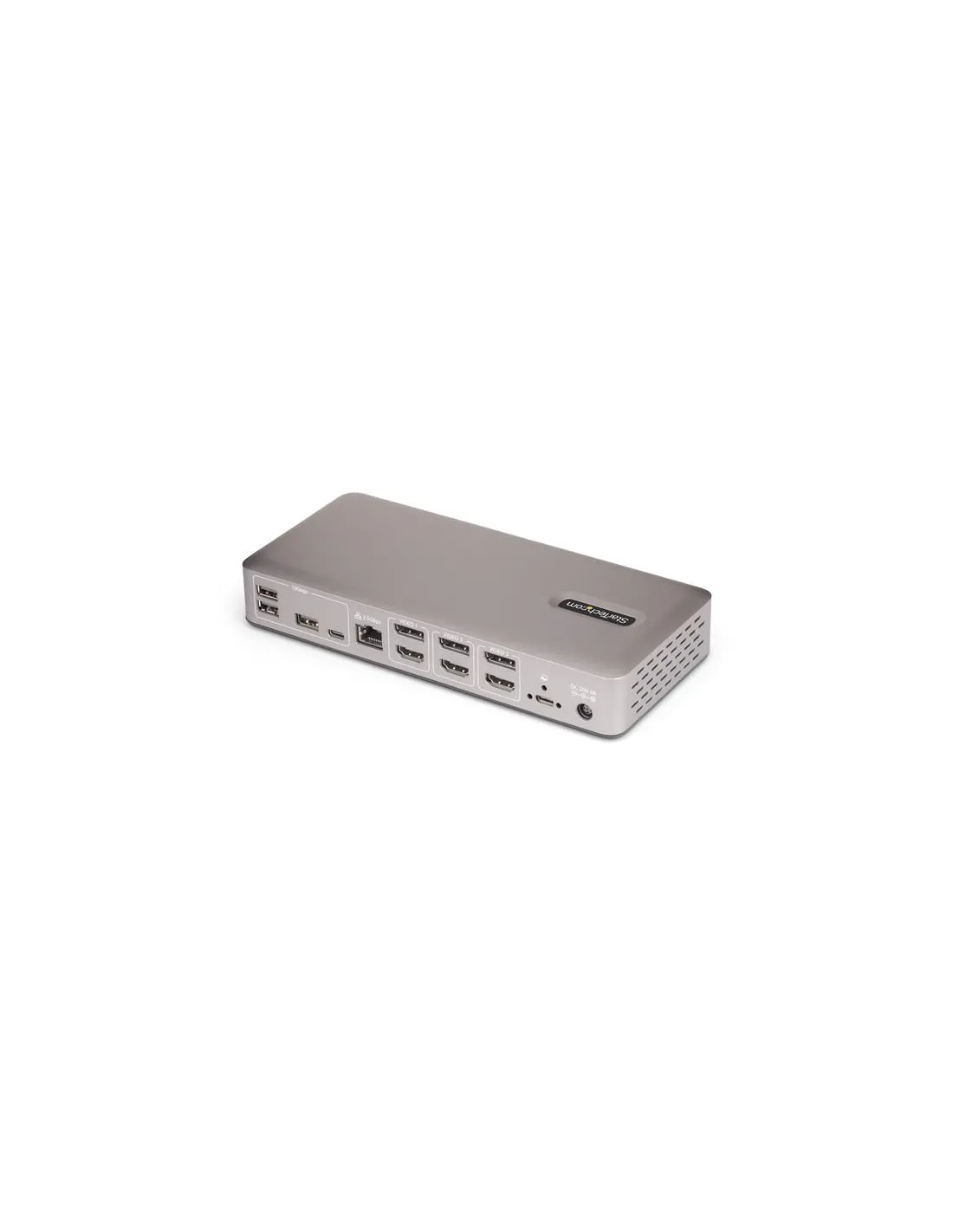 La dock offre tre uscite video (HDMI o DisplayPort), quattro porte USB-A (10Gbps), due porte USB-C (10Gbps e 5Gbps) e supporta fino a 100W di ricarica per il dispositivo host. Un alimentatore da 180 W garantisce il funzionamento di tutte le porte alla massima capacità.