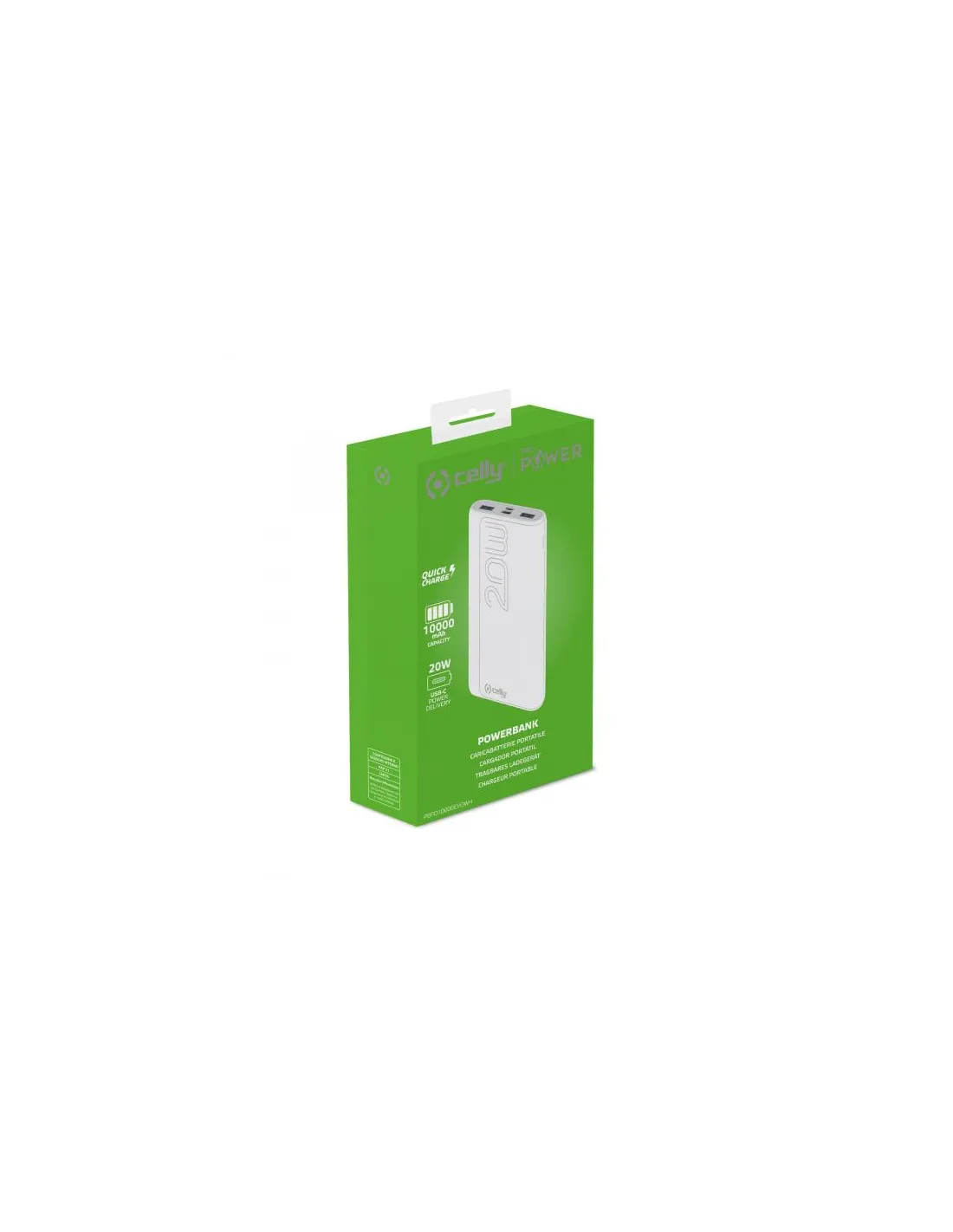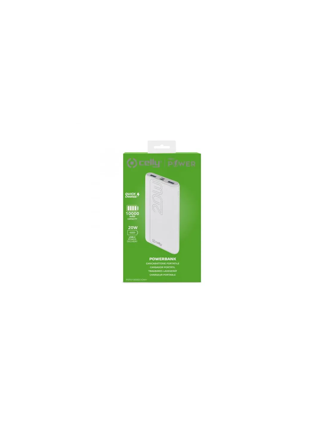 POWERBANK CON TECNOLOGIA POWER DELIVERYPBPD10000EVO e PBPD20000EVO sono Power Bank Celly con tecnologia Power Delivery, rispettivamente caratterizzati da una capacità di 10000 mAh e 20000 mAh.Dotati di 2 porte output USB-A, una porta Micro Usb e una porta input/output USB-C, consentono di caricare simultaneamente tre dispositivi fino ad un massimo di 20 Watt erogati.Grazie alla tecnologia Power Delivery è possibile ricaricare smartphone e tablet in meno di un'ora tramite la porta dedicata USB-C.Compatibile con vari modelli dei maggiori produttori di Smartphone e Tablet: Apple , Samsung , Motorola , Xiaomi, OPPO , Huawei , TCL , Alcatel . Vivo , Realme, Honor.