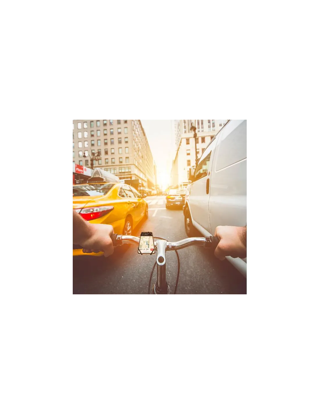 Il supporto può ruotare di 360°per posizionare lo smartphone come preferisci e ha un attacco con cinghia regolabile ultra-flessibile, per adattarlo a tutti i manubri.