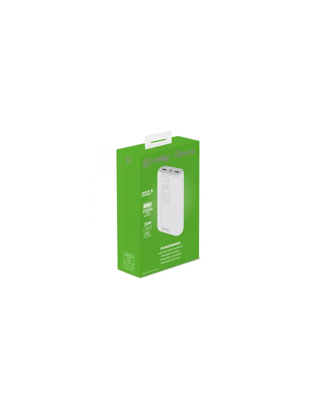 POWERBANK CON TECNOLOGIA POWER DELIVERYPBPD10000EVO e PBPD20000EVO sono powerbank Celly con tecnologia Power Delivery, rispettivamente caratterizzati da una capacità di 10.000 mAh e 20.000 mAh.Dotati di 2 porte output USB-A, una porta Micro Usb e una porta input/output USB-C, consentono di caricare simultaneamente tre dispositivi fino ad un massimo di 20W erogati.Grazie alla tecnologia Power Delivery è possibile ricaricare smartphone e tablet in meno di un'ora tramite la porta dedicata USB-C.