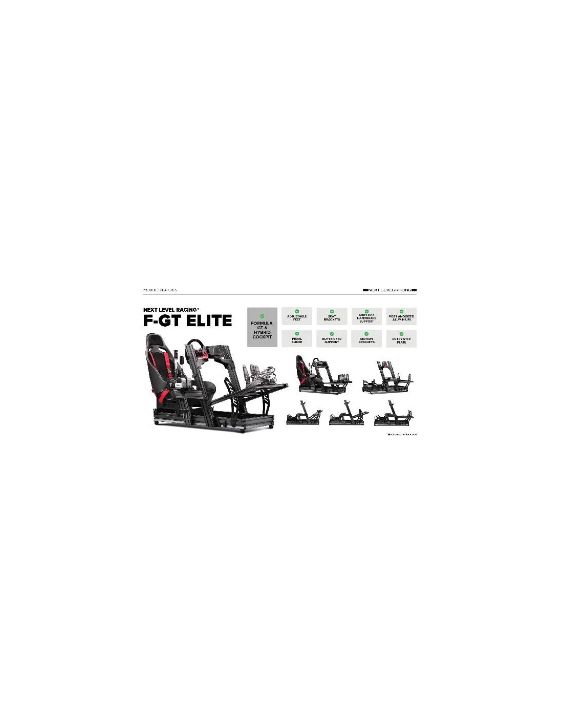 Pur fornendo la massima rigidità e possibilità di regolazioni, il cockpit F-GT Elite offre vere e confortevoli posizioni di guida Formula, GT, ibrida, camion e carroarmato con regolazioni rapide per cambiare posizione, caratteristiche che lo rendono adatto a ogni esigenza. Grazie alle numerose regolazioni possibili per staffe del sedile, volante e nella piastra della pedaliera, il cockpit si adatta a utenti di tutte le dimensioni e stili di guida.