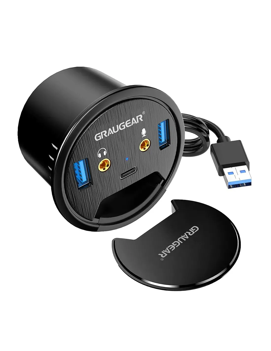 GRAUGEAR G-THUB-AU-60. Interfaccia host: USB 3.2 Gen 1 (3.1 Gen 1) Type-A, Interfacce hub: USB 3.0, USB 3.2 Gen 1 (3.1 Gen 1) Type-C. Colore del prodotto: Nero. Larghezza: 69 mm, Profondità: 69 mm, Altezza: 47 mm. Quantità per pacco: 1 pz
