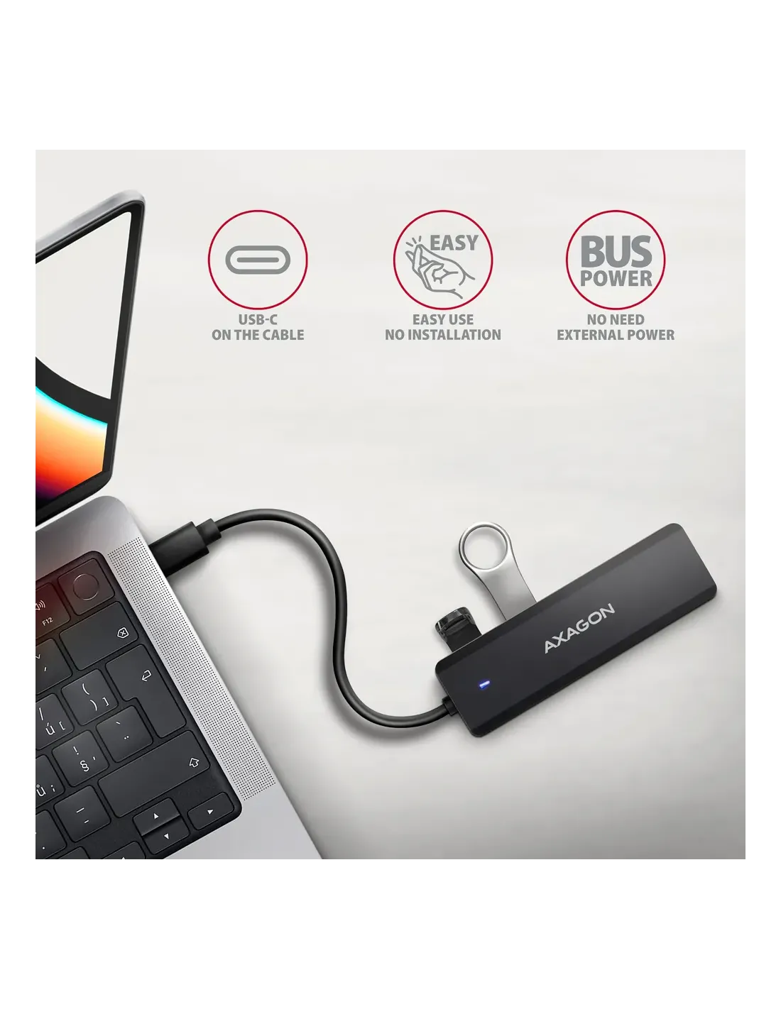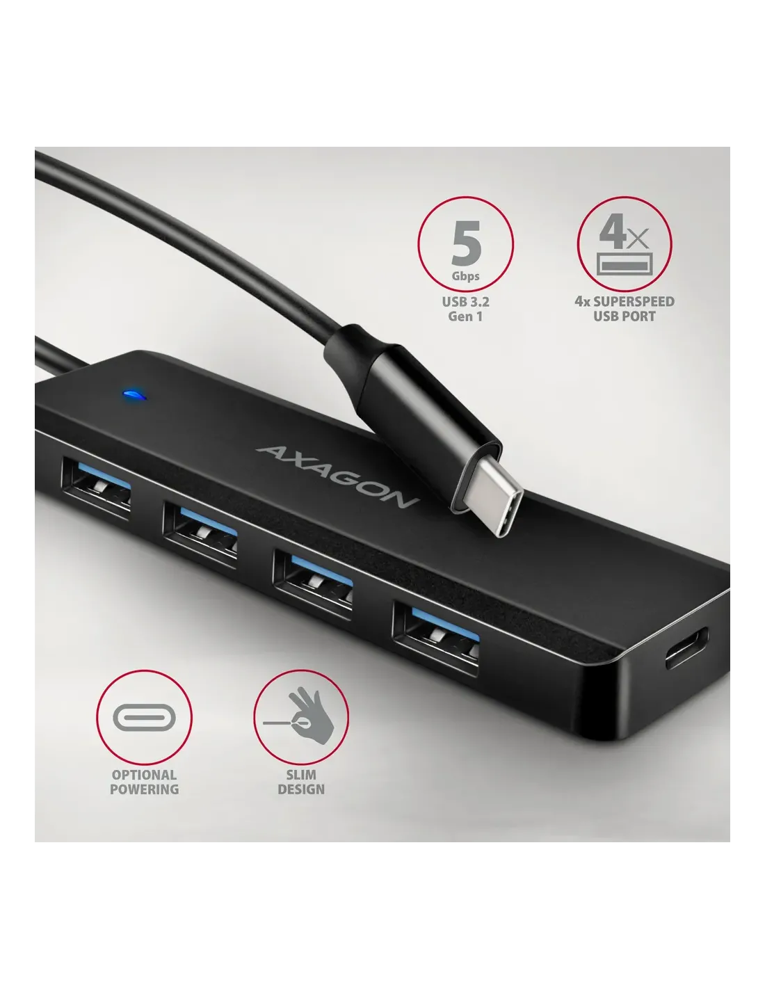 Axagon HUE-C1C. Interfaccia host: USB 3.2 Gen 1 (3.1 Gen 1) Type-C, Interfacce hub: USB 3.2 Gen 1 (3.1 Gen 1) Type-A. Velocità di trasferimento dati: 5000 Mbit/s, Colore del prodotto: Nero, Materiale della scocca: Plastica. Tipo alimentazione: USB. Sistema operativo Windows supportato: Windows 10, Windows 11, Windows 8.1. Larghezza: 106 mm, Profondità: 32 mm, Altezza: 11 mm