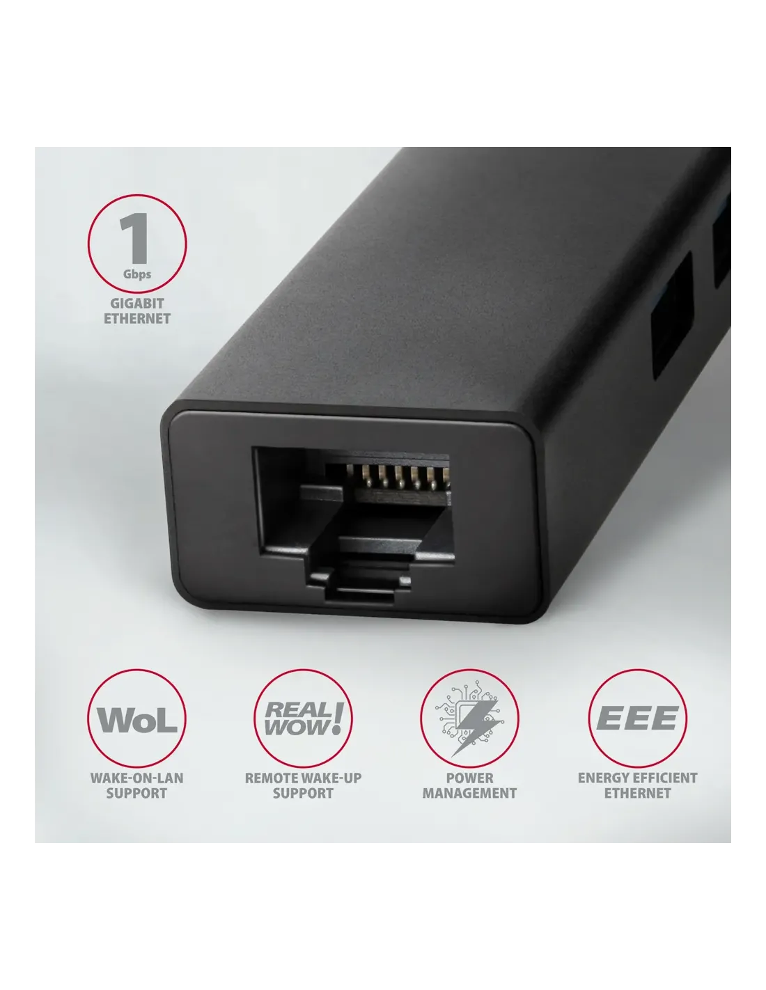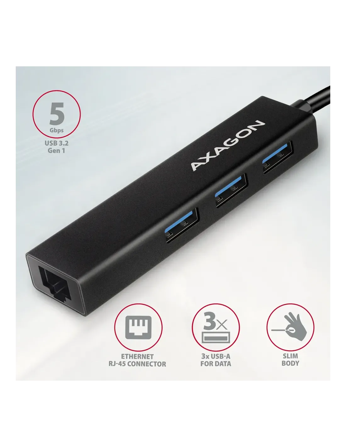 Axagon HMC-GL3A USB-C-Hub 3x USB-A Gbit-LAN schwarz, Cablato, USB 3.2 Gen 1 (3.1 Gen 1) Type-C, 10,100,1000 Mbit/s, IEEE 802.1Q, IEEE 802.1p, IEEE 802.3, IEEE 802.3ab, IEEE 802.3az, IEEE 802.3u, IEEE 802.3x, Nero, RJ-45, USB 3.2 Gen 1 (3.1 Gen 1) Type-A