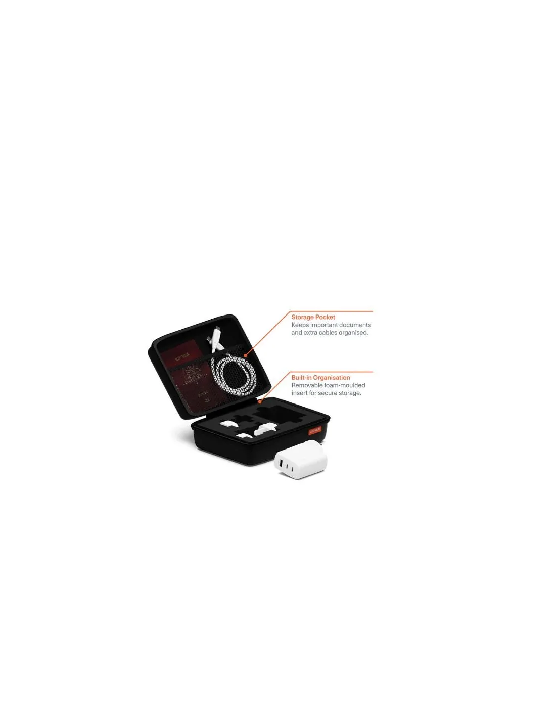 tu vada. Progettato con un meccanismo di interblocco in due fasi, dà priorità alla sicurezza per te e i tuoi cari mantenendo i tuoi dispositivi accesi in movimento. Carica fino a 3 dispositivi contemporaneamente e conserva il contenuto del tuo kit nella custodia da viaggio con cerniera, dotata di inserti in schiuma sagomata per mantenere tutto al sicuro e organizzato.