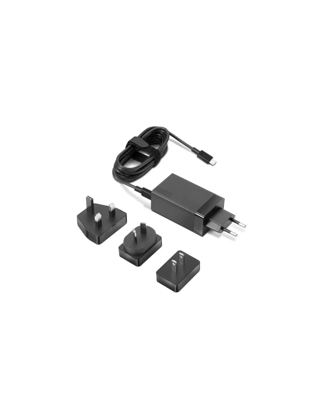 MASSIMA SEMPLICITÀ CON UN ADATTATORE DA VIAGGIO CA USB-C DA 65 W. L'adattatore da viaggio Lenovo CA USB-C da 65 W elimina la necessità di utilizzare più caricabatterie, facilitando il trasporto per lavoro o tempo libero. I dispositivi USB-C possono essere alimentati in qualsiasi momento con 4 spine intercambiabili (Stati Uniti, Unione Europea, Australia e Regno Unito) per prese da 100 V-240 V in hotel, bar o aeroporti. Una volta caricato il dispositivo è sufficiente riporre l'adattatore compatto nella custodia inclusa per poter ripartire.