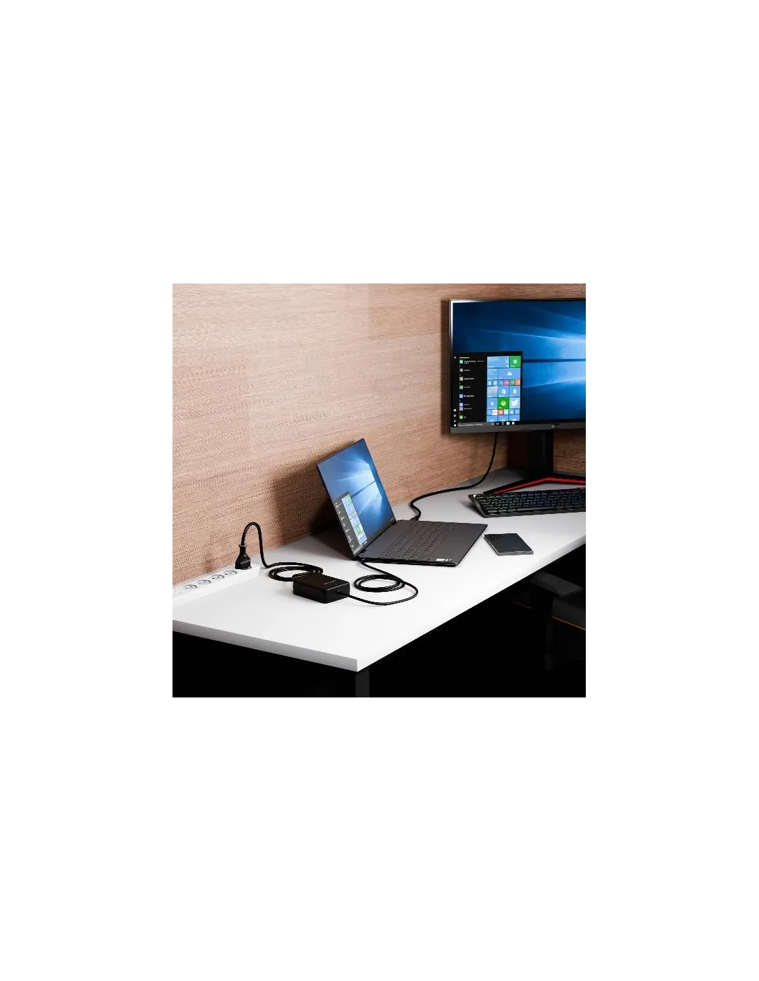 Tecnologia GaN: L'avanzata tecnologia GaN mantiene freddo il caricatore del tuo laptop per un'esperienza di ricarica più sicura e affidabile.