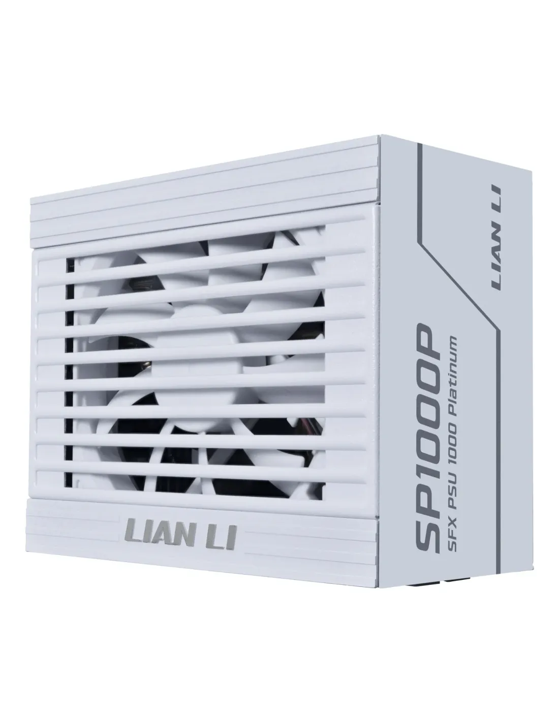 Lian Li SP1000P. Potenza totale: 1000 W, Tensione di ingresso AC: 100 - 240 V, Frequenza di ingresso AC: 50/60 Hz. Connettore scheda madre: 24-pin ATX, Lunghezza del cavo di alimentazione della scheda madre: 35 cm, Lunghezza del cavo di alimentazione SATA: 350,500,650 mm. Utilizzo: PC, Fattore di forma dell'unità di alimentazione (PSU): SFX, Certificazione 80 PLUS: 80 PLUS Platinum. Colore del prodotto: Bianco, Diametro del ventilatore: 9,2 cm, Numero di ventole: 1 ventola(e). Larghezza: 125 mm, Profondità: 100 mm, Altezza: 63,5 mm