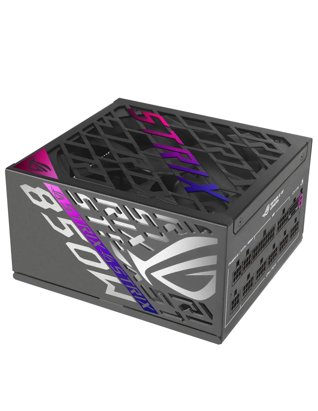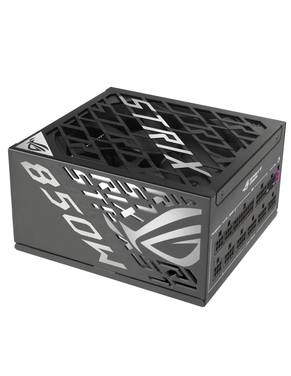 ASUS ROG -STRIX-850P-GAMING. Potenza totale: 850 W, Tensione di ingresso AC: 100 - 240 V, Tipo di correttore del fattore di potenza (PFC): Attivo. Connettore scheda madre: 20+4 pin ATX, Lunghezza del cavo di alimentazione della scheda madre: 61 cm, Lunghezza del cavo di alimentazione SATA: 400,120 mm. Utilizzo: PC, Fattore di forma dell'unità di alimentazione (PSU): ATX, Certificazione 80 PLUS: 80 PLUS Platinum. Colore del prodotto: Nero, Tipo di raffreddamento: Semi-passive, Numero di ventole: 1 ventola(e). Cavi inclusi: CPU, PCIe, SATA, Peripheral (Molex)