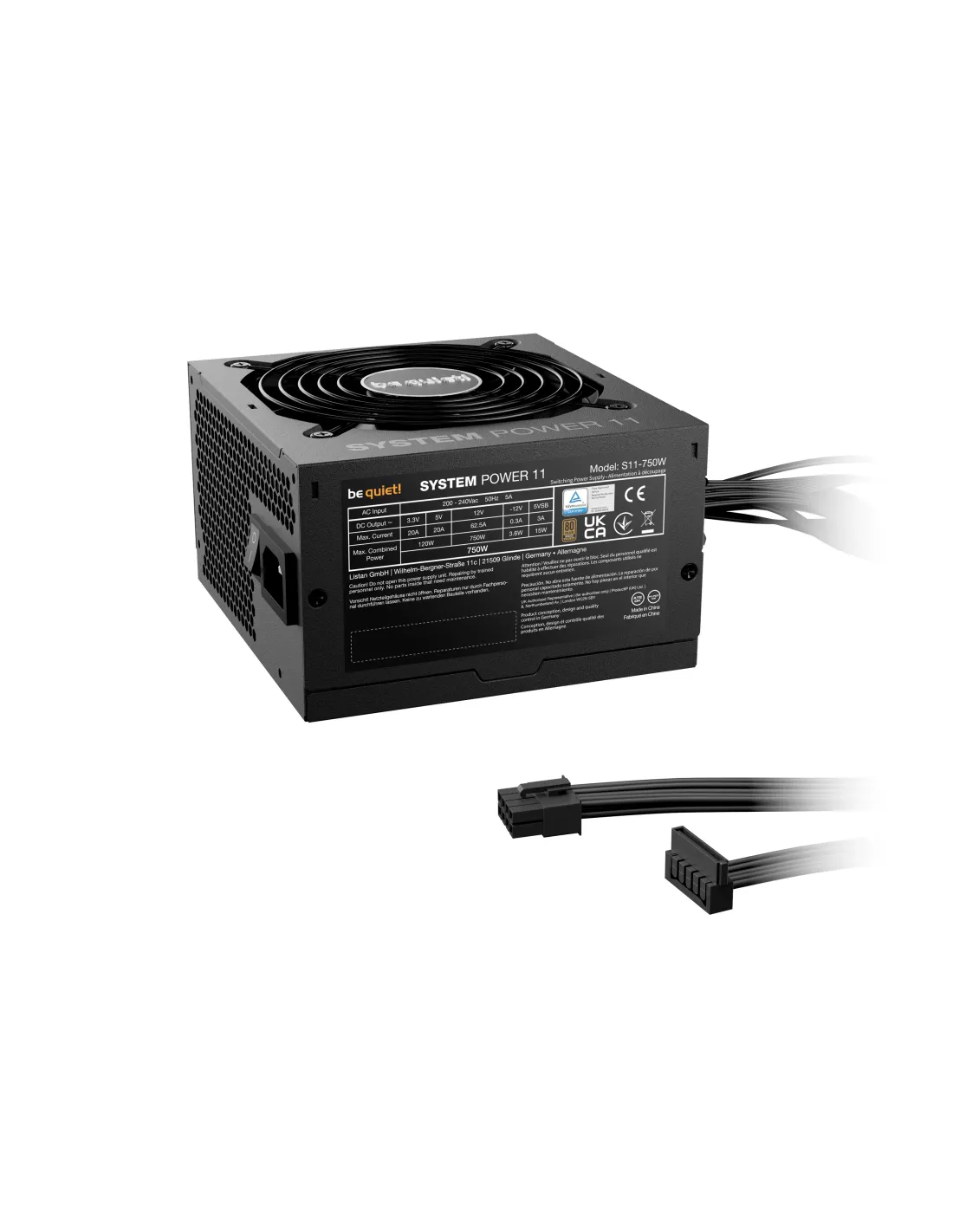 be quiet! System Power 11 750W. Potenza totale: 750 W, Tensione di ingresso AC: 200 - 240 V, Frequenza di ingresso AC: 50 Hz. Connettore scheda madre: 20+4 pin ATX, Tipo di cablaggio: Non modulare. Utilizzo: PC, Fattore di forma dell'unità di alimentazione (PSU): ATX, Certificazione 80 PLUS: 80 PLUS Bronze. Colore del prodotto: Nero, Tipo di raffreddamento: Attivo, Diametro del ventilatore: 12 cm. Certificati di conformità: CB, CE, RoHS, TÜV mark, UKCA, WEEE