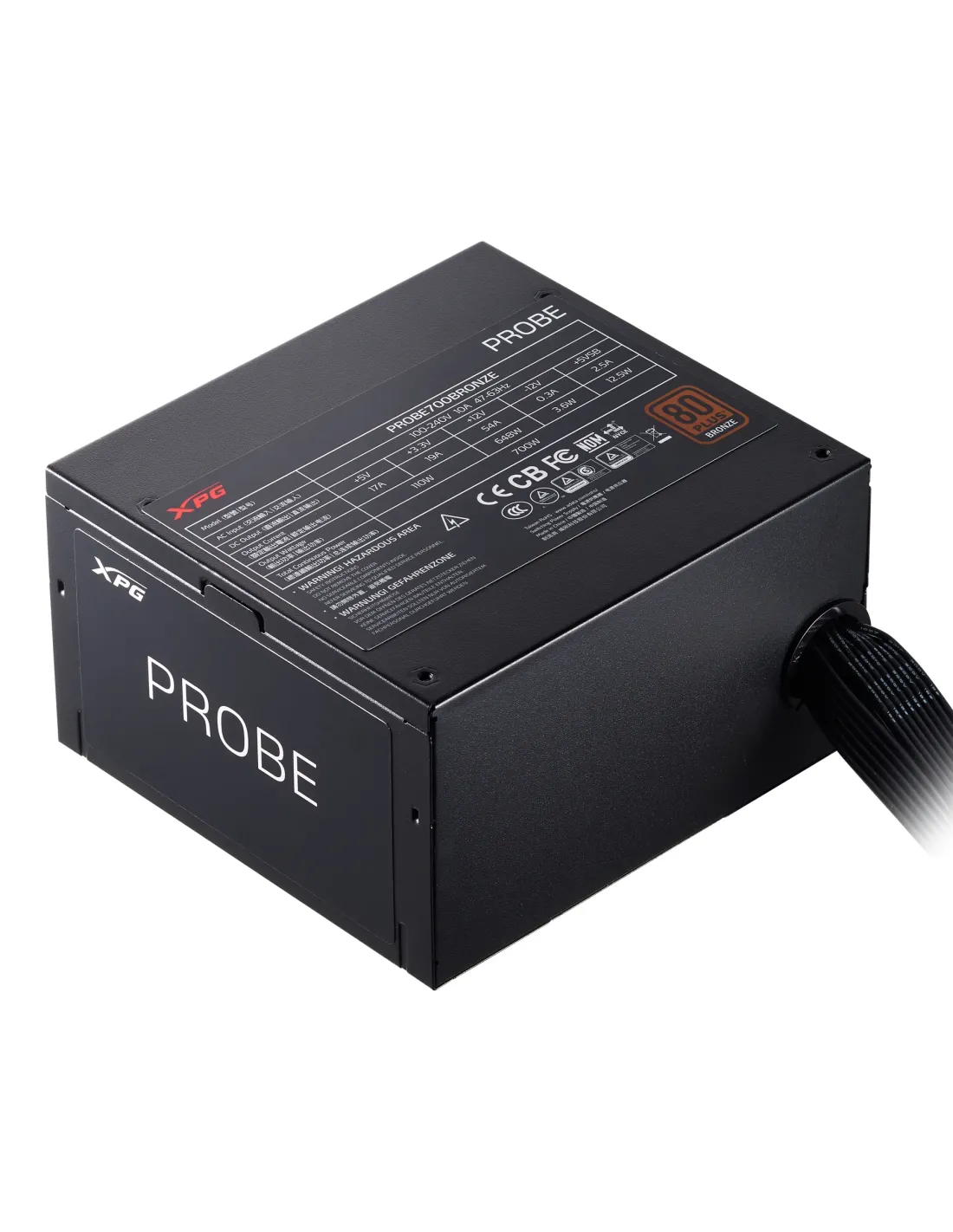XPG PROBE 600 BRONZE. Potenza totale: 600 W, Tensione di ingresso AC: 100 - 240 V, Frequenza di ingresso AC: 47 - 63 Hz. Connettore scheda madre: 20+4 pin ATX, Tipo di cablaggio: Non modulare. Utilizzo: PC, Fattore di forma dell'unità di alimentazione (PSU): ATX, Certificazione 80 PLUS: 80 PLUS Bronze. Colore del prodotto: Nero, Tipo di raffreddamento: Attivo, Diametro del ventilatore: 12 cm. Certificazione: CB, CE, FCC, TUV, cTUVus, BSMI, CCC, NOM, FCC IC, UKCA,EAC, RCM