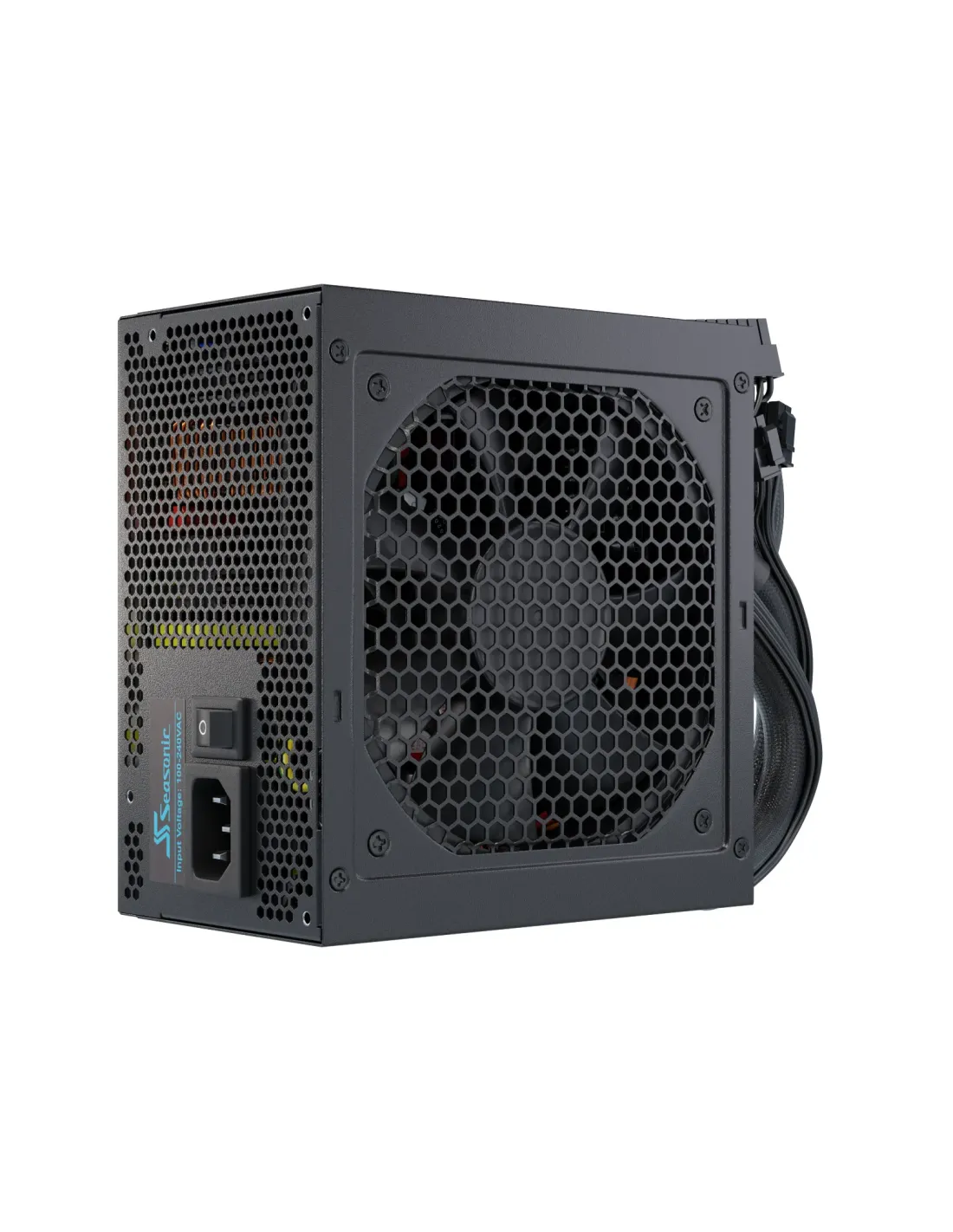 Seasonic G12 GM. Potenza totale: 650 W, Tensione di ingresso AC: 100 - 240 V, Frequenza di ingresso AC: 50/60 Hz. Connettore scheda madre: 20+4 pin ATX, Lunghezza del cavo di alimentazione della scheda madre: 55 cm, Lunghezza del cavo di alimentazione della periferica (Molex): 690 mm. Utilizzo: PC, Fattore di forma dell'unità di alimentazione (PSU): ATX, Certificazione 80 PLUS: 80 PLUS Gold. Colore del prodotto: Nero, Tipo di raffreddamento: Attivo, Diametro del ventilatore: 12 cm. Cavi inclusi: AC, PCIe, Peripheral (Molex), SATA