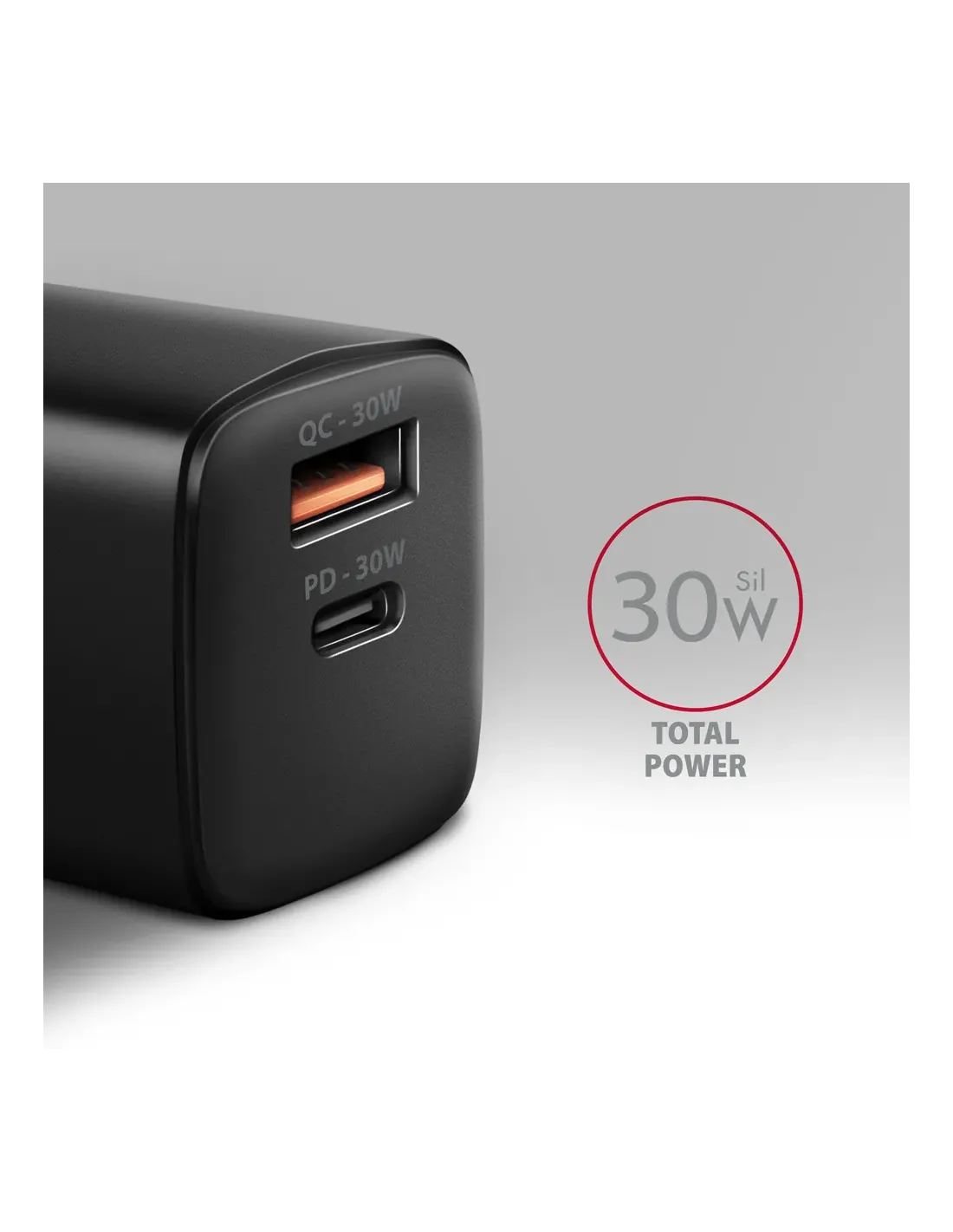 Axagon ACU-PQ30 Ladegerät QC3.0, 4.0/AFC/FCP/PPS/Apple+ PD USB-C, 30W - schwarz - Kompaktes Ladegerät - 1x USB-C und 1x USB-A. Tipo di caricatore: Interno, Tipologia alimentazione: AC, Compatibilità caricatore: Telefono cellulare, Smartphone, Orologio intelligente, Tablet, Universale. Voltaggio di ingresso: 100 - 240 V. Quantità porte USB 2.0: 1, Quantità di porte USB Tipo C: 1, Ricarica rapida, Funzionalità di protezione dell'alimentazione: Sovraccarico, Surriscaldamento, Sovraccarico, Cortocircuito, Sotto carico. Colore del prodotto: Nero
