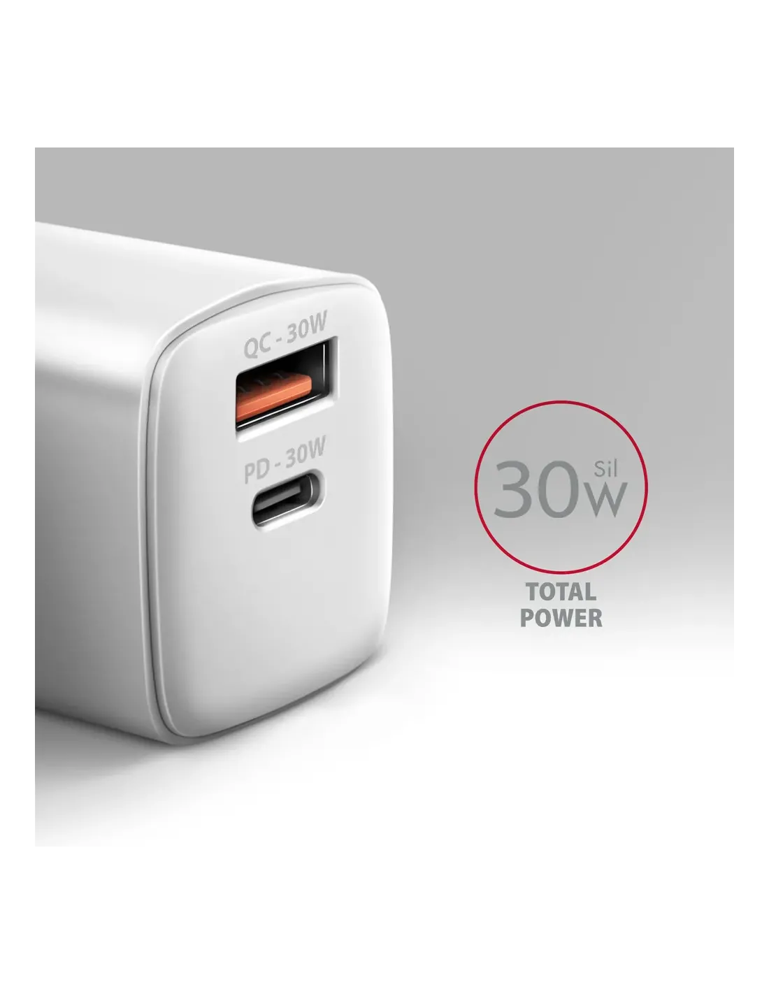 Axagon ACU-PQ30W Ladegerät QC3.0.4.0/AFC/FCP/PPS/Apple+ PD USB-C 30W - weiß - USB Typ C. Tipo di caricatore: Interno, Tipologia alimentazione: AC, Compatibilità caricatore: Telefono cellulare, Smartphone, Orologio intelligente, Tablet, Universale. Voltaggio di ingresso: 100 - 240 V. Quantità porte USB 2.0: 1, Quantità di porte USB Tipo C: 1, Ricarica rapida, Funzionalità di protezione dell'alimentazione: Sovraccarico, Surriscaldamento, Sovraccarico, Cortocircuito, Sotto carico. Colore del prodotto: Bianco