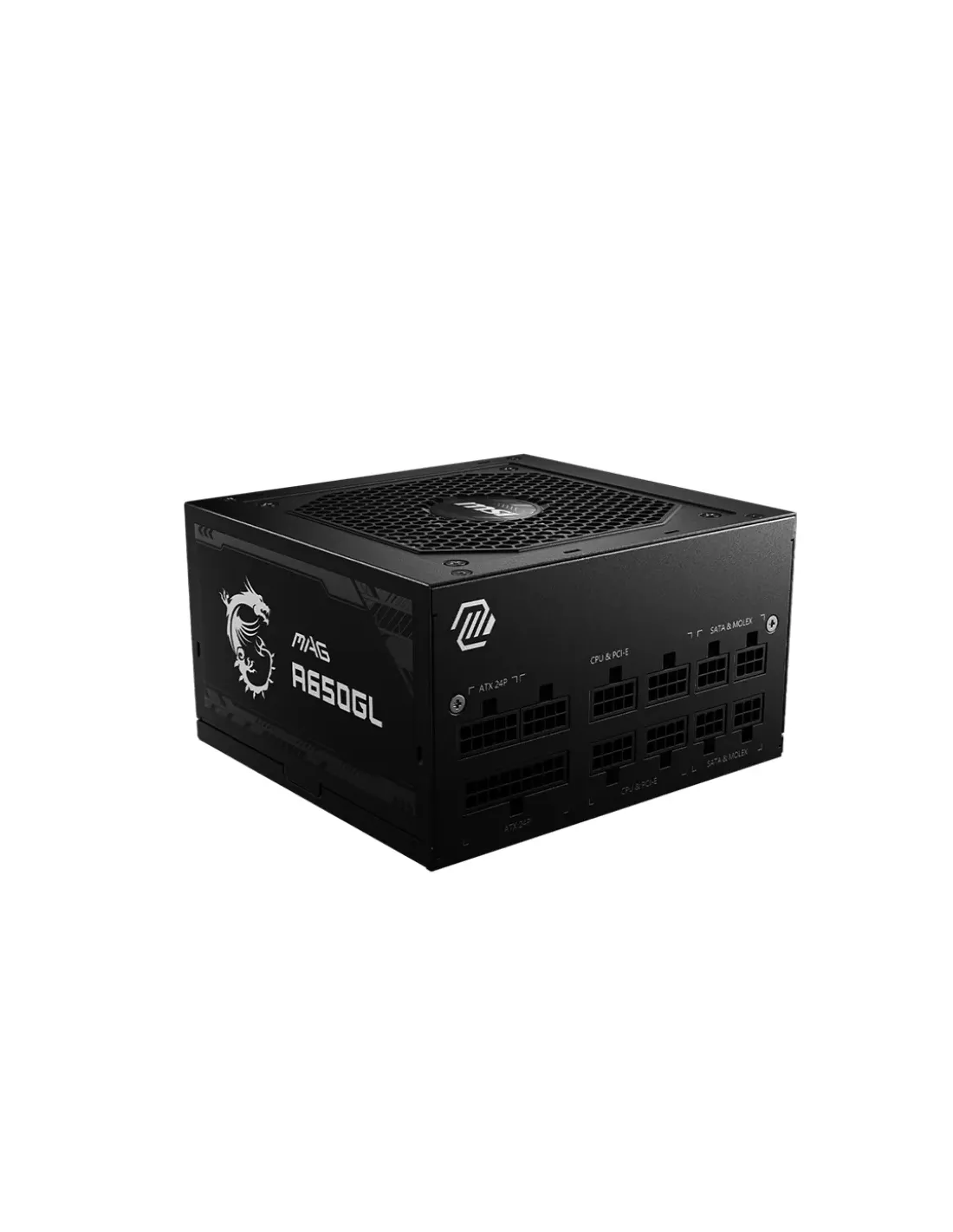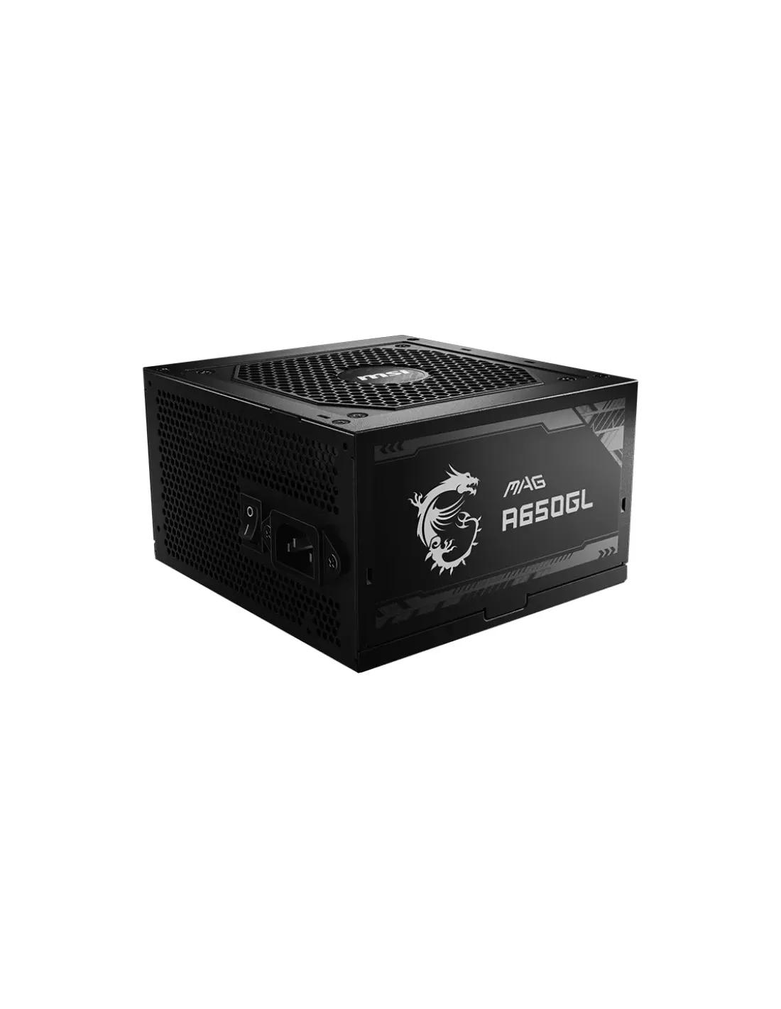 MSI MAG A650GL. Potenza totale: 650 W, Tensione di ingresso AC: 100 - 240 V, Corrente di ingresso massima (@110V): 10 A. Connettore scheda madre: 20+4 pin ATX, Tipo di cablaggio: Totalmente Modulare. Utilizzo: PC, Fattore di forma dell'unità di alimentazione (PSU): ATX, Certificazione 80 PLUS: 80 PLUS Bronze. Colore del prodotto: Nero, Tipo di raffreddamento: Attivo, Diametro del ventilatore: 12 cm. Larghezza: 150 mm, Profondità: 140 mm, Altezza: 86 mm