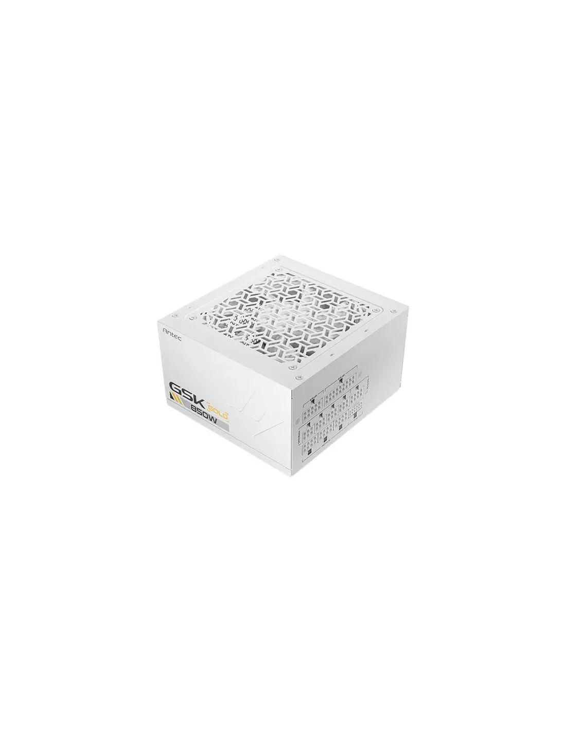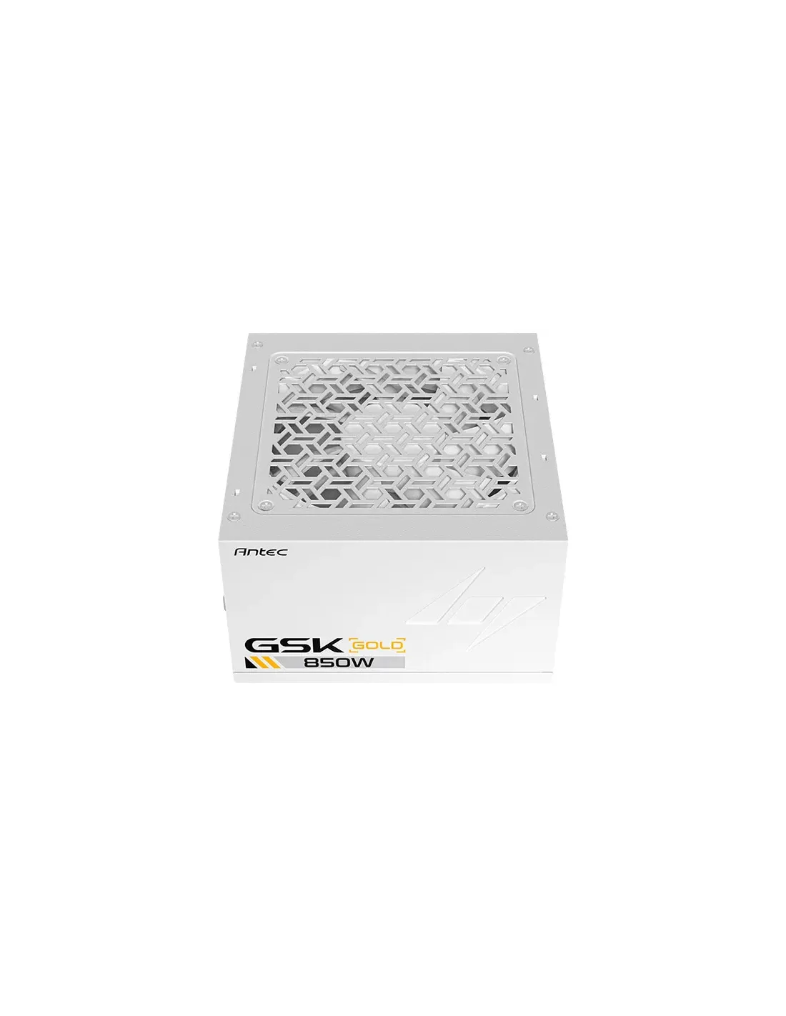 Antec GSK ATX3.1 850W White 80 PLUS Gold. Potenza totale: 850 W, Tensione di ingresso AC: 100 - 240 V, Frequenza di ingresso AC: 50/60 Hz. Connettore scheda madre: 20+4 pin ATX, Lunghezza del cavo di alimentazione della scheda madre: 60 cm, Lunghezza del cavo di alimentazione SATA: 500,650,800,950 mm. Utilizzo: PC, Fattore di forma dell'unità di alimentazione (PSU): ATX, Certificazione 80 PLUS: 80 PLUS Gold. Colore del prodotto: Bianco, Tipo di raffreddamento: Attivo, Diametro del ventilatore: 12 cm. Certificazione: cTUVus / TUV / CB / RCM / CE / FCC / BSMI / KC / UKCA / ICES
