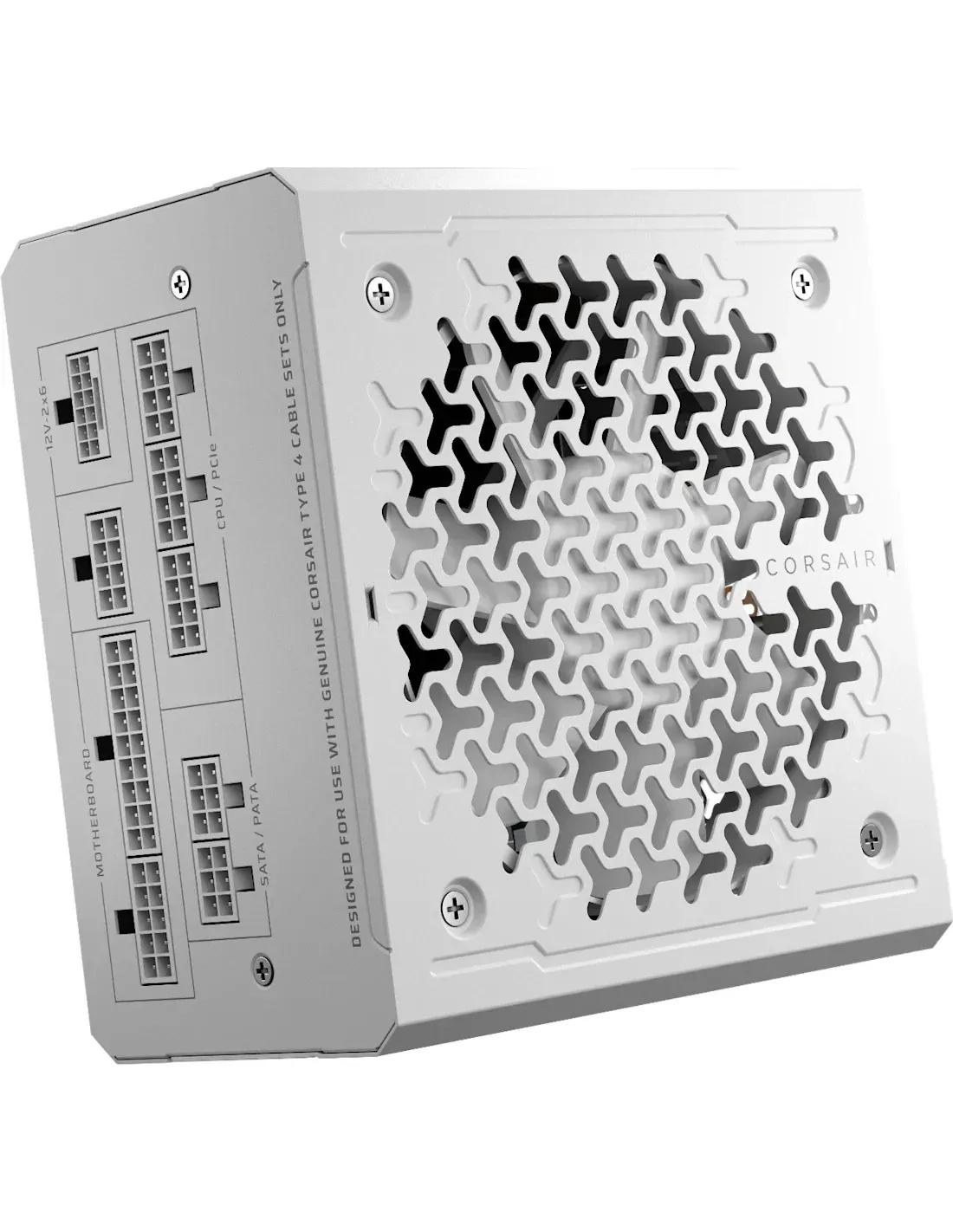 Corsair RMe Series RM1000e. Potenza totale: 1000 W, Tensione di ingresso AC: 100 - 240 V, Frequenza di ingresso AC: 47 - 63 Hz. Connettore scheda madre: 24-pin ATX, Tipo di cablaggio: Totalmente Modulare. Utilizzo: PC, Fattore di forma dell'unità di alimentazione (PSU): ATX, Certificazione 80 PLUS: 80 PLUS Gold. Colore del prodotto: Bianco, Tipo di raffreddamento: Attivo, Diametro del ventilatore: 12 cm. Certificati di conformità: CE, RoHS, UKCA