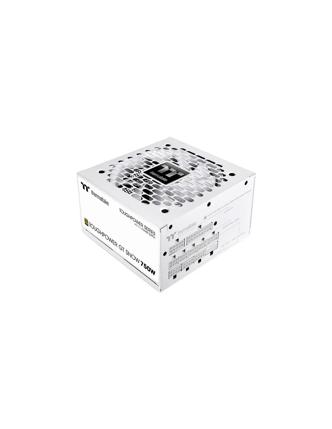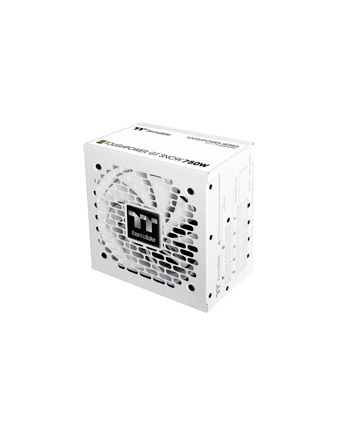 Thermaltake Toughpower Gt. Potenza totale: 750 W, Tensione di ingresso AC: 100 - 240 V, Frequenza di ingresso AC: 50/60 Hz. Connettore scheda madre: 24-pin ATX, Lunghezza del cavo di alimentazione della scheda madre: 55 cm, Lunghezza del cavo di alimentazione SATA: 150,450 mm. Utilizzo: PC/server, Fattore di forma dell'unità di alimentazione (PSU): ATX, Certificazione 80 PLUS: 80 PLUS Gold. Colore del prodotto: Bianco, Tipo di raffreddamento: Attivo, Diametro del ventilatore: 12 cm. Certificazione: CE/UKCA/ICES/TUV/LVD/RCM/CB/FCC/cTUVus/BSMI/CCC/BIS/S-MARK