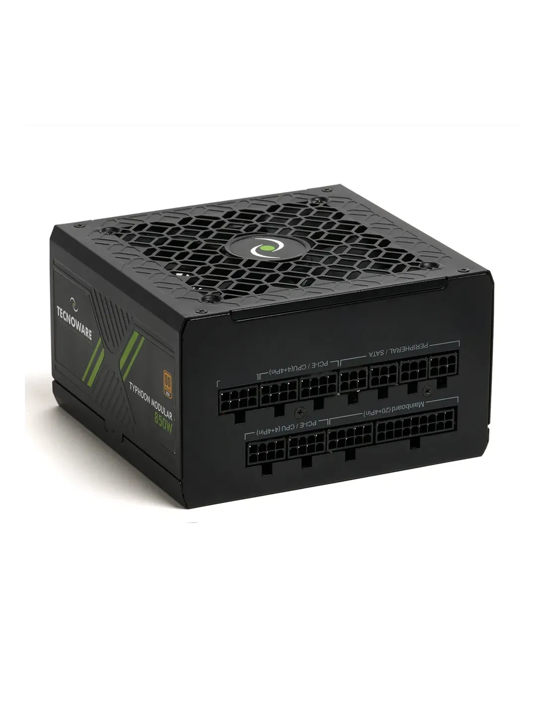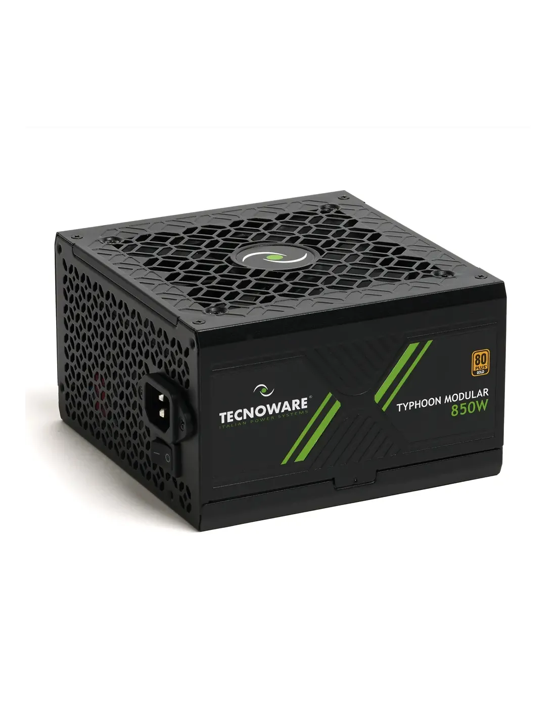 Tecnoware FAL851TPM. Potenza totale: 850 W, Tensione di ingresso AC: 180 - 240 V, Frequenza di ingresso AC: 47 - 63 Hz. Connettore scheda madre: 20+4 pin ATX, Lunghezza del cavo di alimentazione della scheda madre: 55 cm, Tipo di cablaggio: Totalmente Modulare. Utilizzo: PC, Fattore di forma dell'unità di alimentazione (PSU): ATX, Certificazione 80 PLUS: 80 PLUS Gold. Colore del prodotto: Nero, Tipo di raffreddamento: Attivo, Diametro del ventilatore: 12 cm. Certificati di conformità: CE