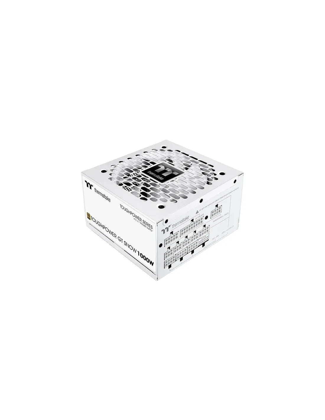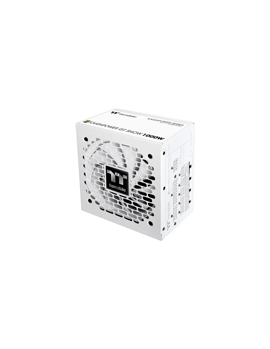 Thermaltake Toughpower GT Snow 1000W. Potenza totale: 1000 W, Tensione di ingresso AC: 100 - 240 V, Frequenza di ingresso AC: 50/60 Hz. Connettore scheda madre: 24-pin ATX, Lunghezza del cavo di alimentazione della scheda madre: 55 cm, Lunghezza del cavo di alimentazione SATA: 150,450 mm. Utilizzo: PC, Fattore di forma dell'unità di alimentazione (PSU): ATX, Certificazione 80 PLUS: 80 PLUS Gold. Colore del prodotto: Bianco, Tipo di raffreddamento: Attivo, Diametro del ventilatore: 12 cm. Certificati di conformità: BIS, BSMI, CB, CCC, CE, EAC, Federal Communications Commission (FCC), ICES, Direttiva sulla bassa...