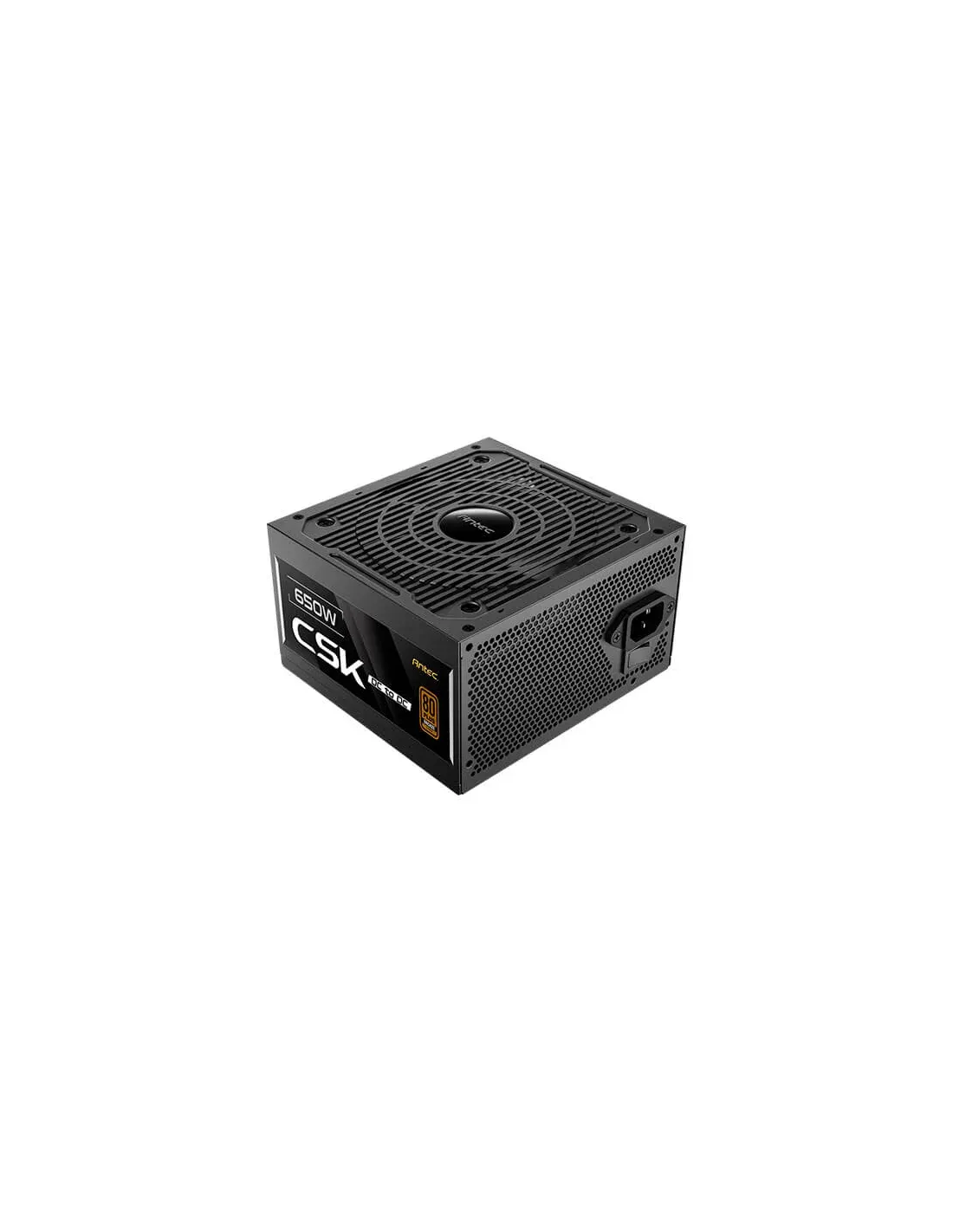 Antec CSK650DC EC. Potenza totale: 650 W, Tensione di ingresso AC: 100 - 240 V, Frequenza di ingresso AC: 50/60 Hz. Connettore scheda madre: 20+4 pin ATX, Tipo di cablaggio: Non modulare. Utilizzo: PC, Fattore di forma dell'unità di alimentazione (PSU): ATX, Certificazione 80 PLUS: 80 PLUS Bronze. Colore del prodotto: Nero, Diametro del ventilatore: 12 cm. Certificati di conformità: BIS, BSMI, CB, CE, Federal Communications Commission (FCC), ICES, KC, RCM, UKCA, cTUVus