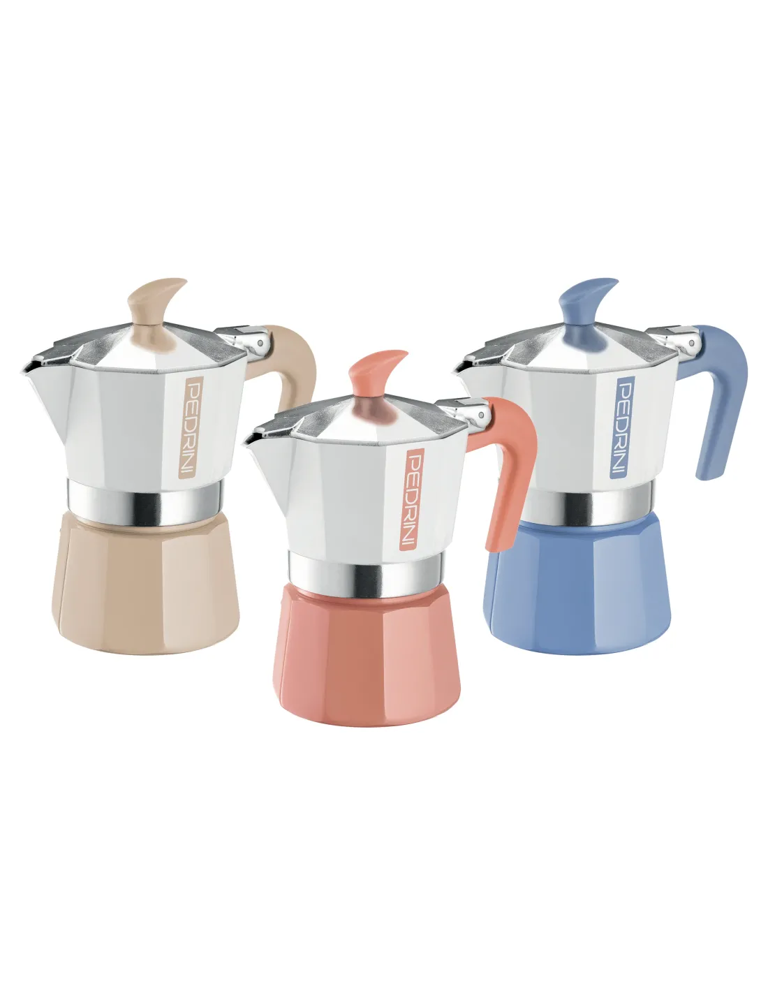 Personalità e tendenza per un buon caffè preparato con un tocco di colore. La palette cromatica pastello, a contrasto con i manici e pomoli, esprime al meglio la contemporaneità dello stile di chi vuole incontrare l’aroma del buon caffè, senza rinunciare al bello. Da portare e da lasciare in tavola, MyMoka color non passa certo inosservata.