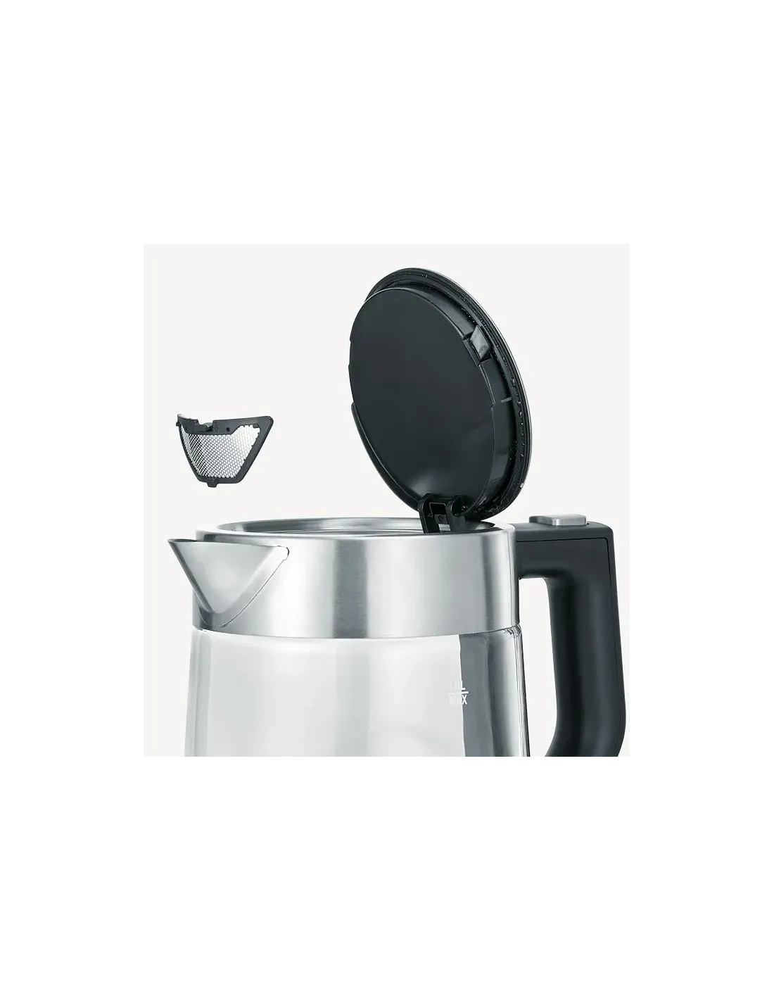 Severin WK 3468. Capacità tanica acqua: 1 L. Potenza: 2200 W. Colore del prodotto: Nero, Acciaio inox, Trasparente, Materiale della scocca: Vetro, Indicatore del livello dell'acqua, Arresto di sicurezza contro il surriscaldamento. Senza filo. Filtro