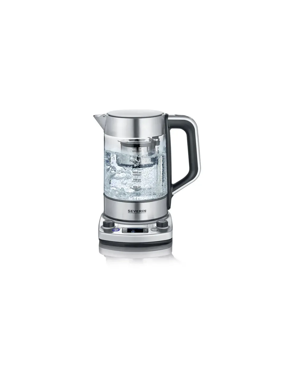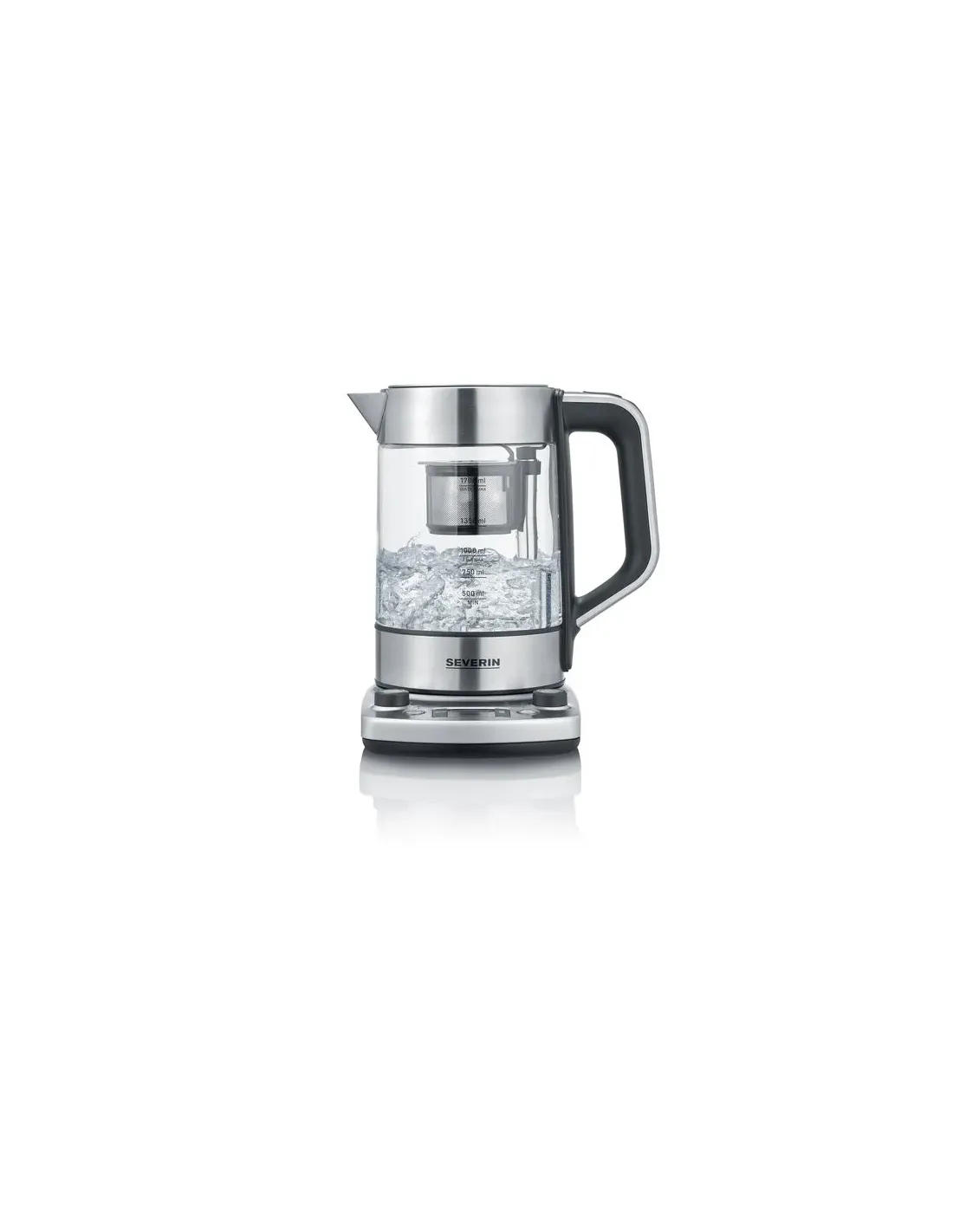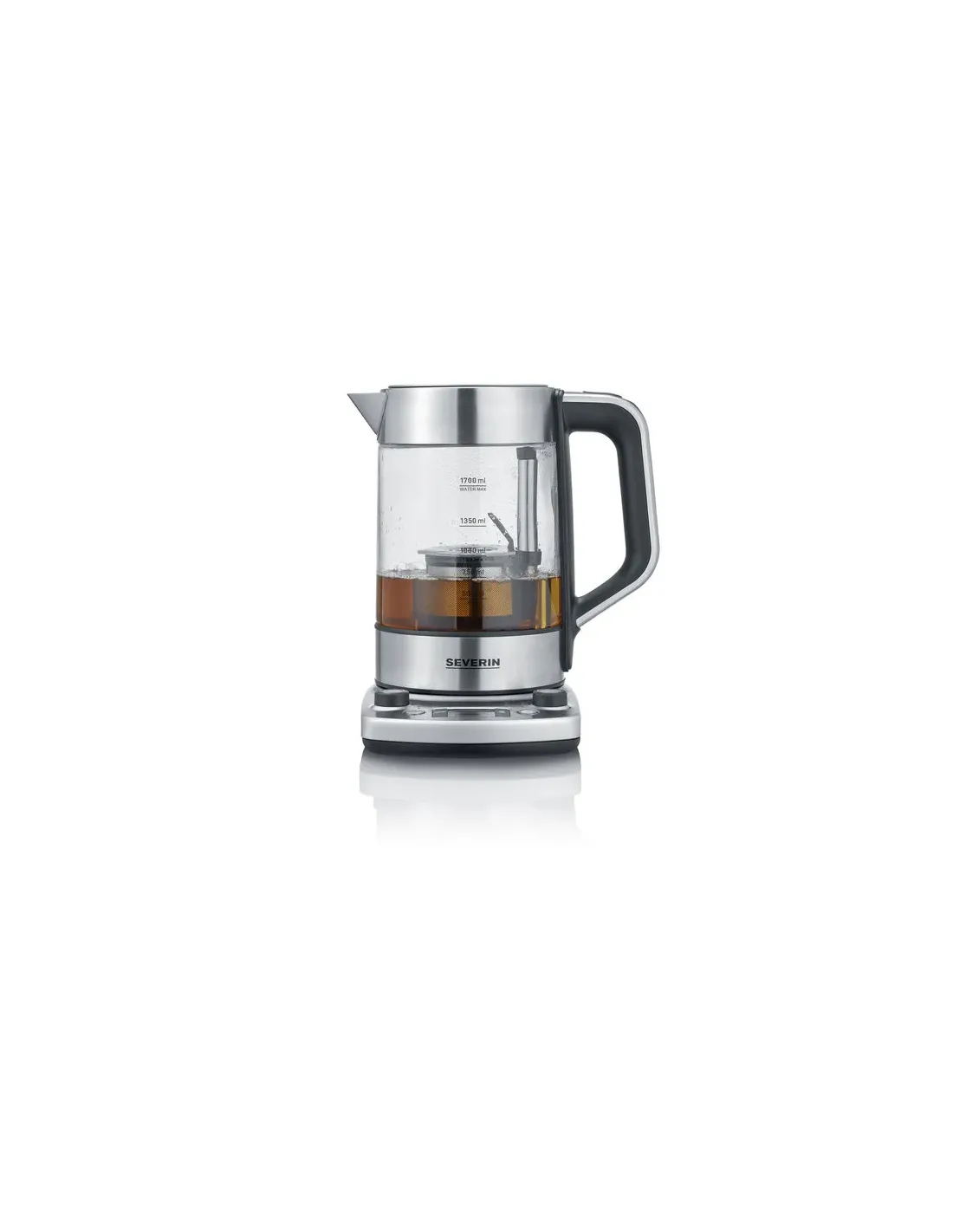 Severin WK 3422. Capacità tanica acqua: 1,7 L. Potenza: 3000 W. Colore del prodotto: Acciaio inox, Materiale della scocca: Vetro, Acciaio inox, Termostato regolabile, Indicatore del livello dell'acqua, Arresto di sicurezza contro il surriscaldamento. Senza filo. Funzione mantieni al caldo, Filtro