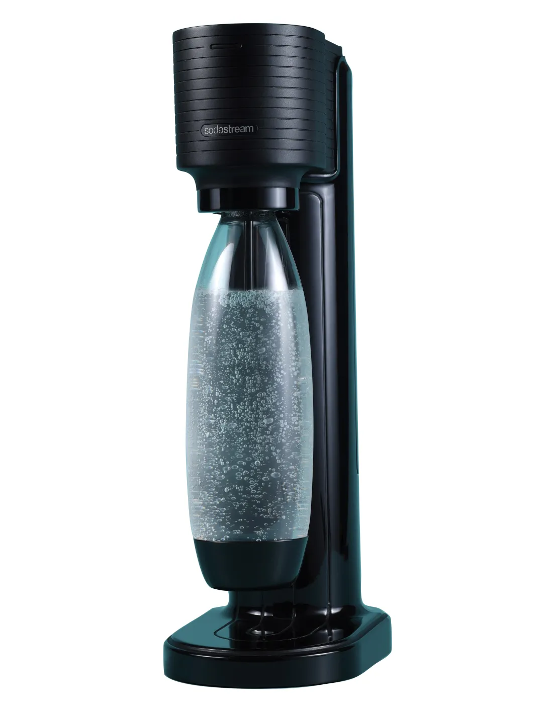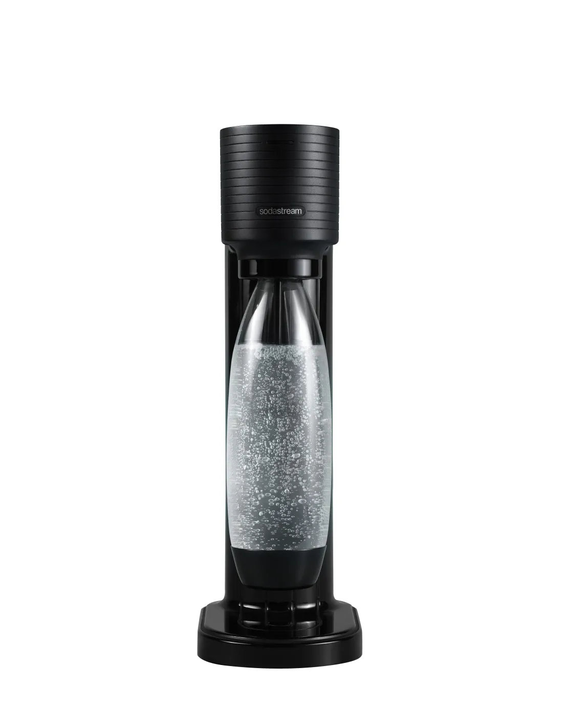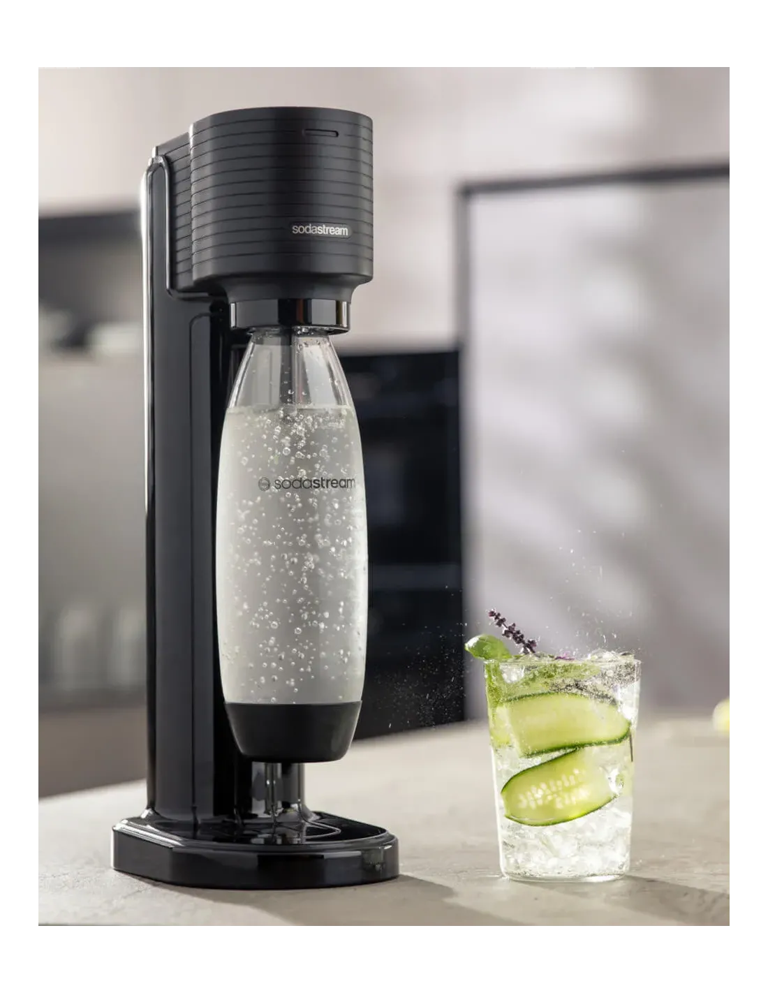 SodaStream Gaia. Colore del prodotto: Nero. Larghezza: 198 mm, Profondità: 198 mm, Altezza: 437 mm. Larghezza imballo: 200 mm, Profondità imballo: 200 mm, Altezza imballo: 440 mm. Volume della bottiglia per gasatore: 1 L, Materiale bottiglia: Polietilene tereftalato (PET)