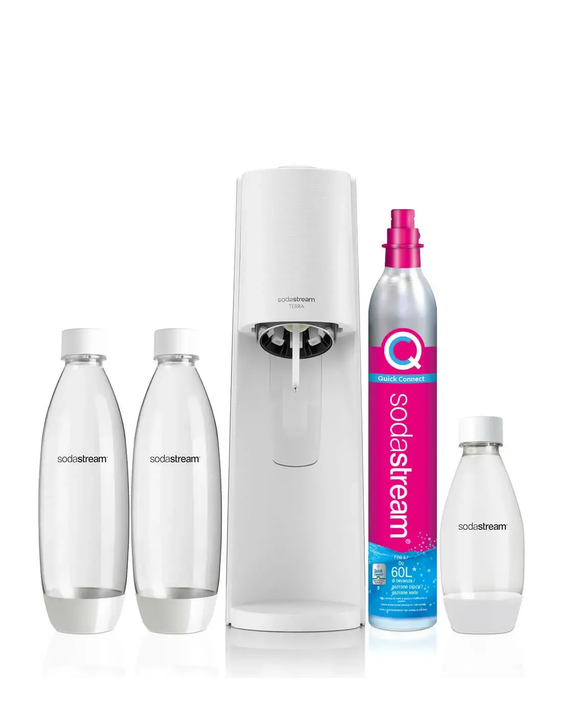 SodaStream Terra Bianco Value Pack, Metallo, Plastica, Polietilene tereftalato (PET), Bianco, 133 mm, 195 mm, 430 mm, Scatola