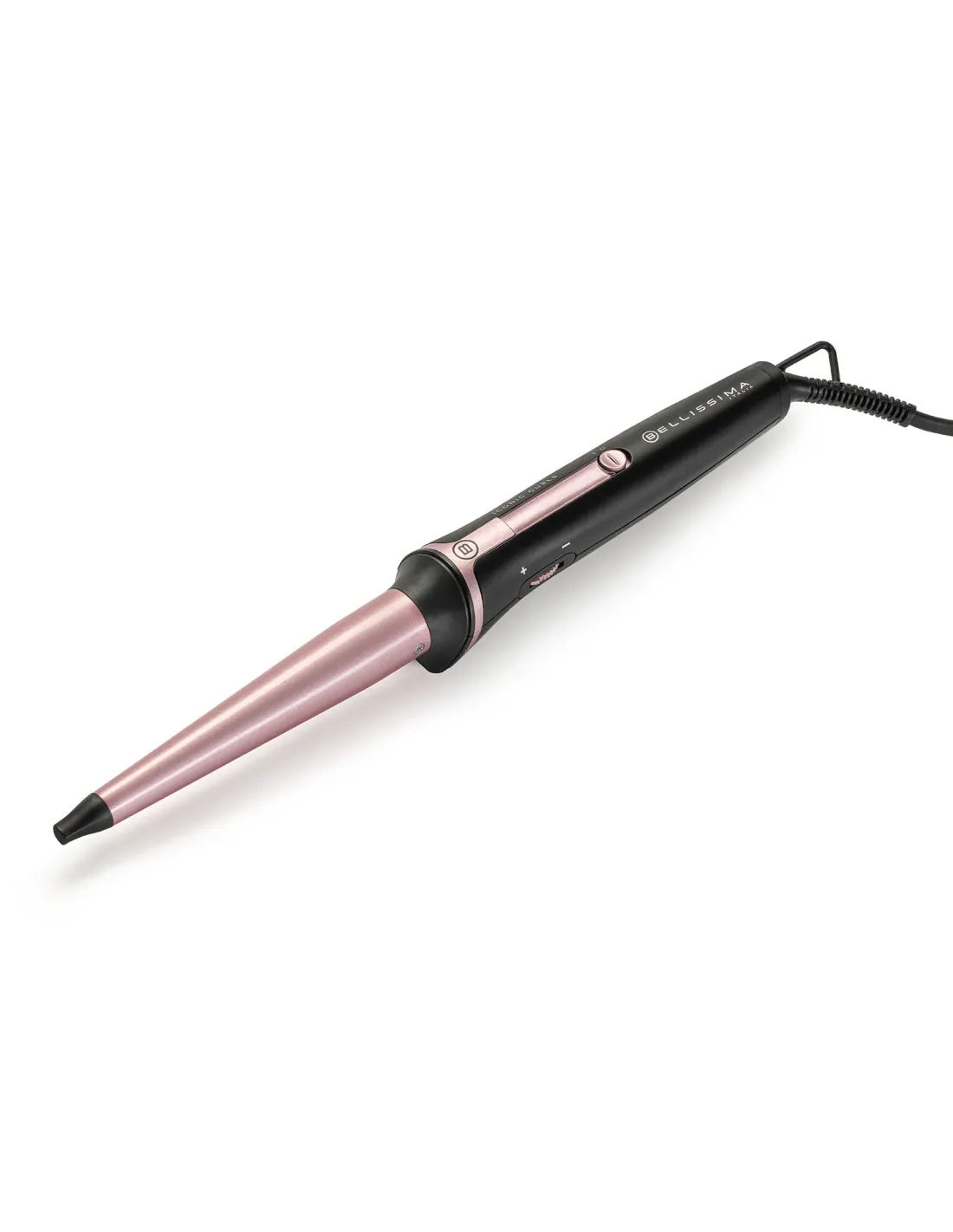 Con il ferro arricciacapelli conico Bellissima Iconic Curls crei ricci morbidi con effetto naturale, in modo facile e rispettando i tuoi capelli. Grazie alla forma conica del ferro, che va da 25 a 13 mm di diametro, è possibile realizzare diversi tipi di riccio. Ricci più ampi se avvolgi le ciocche sulla parte più larga del cono, ricci più stretti lavorando solo sulla punta dello styler o ricci ampi con punte definite avvolgendo i capelli dalla radice su tutto il ferro.